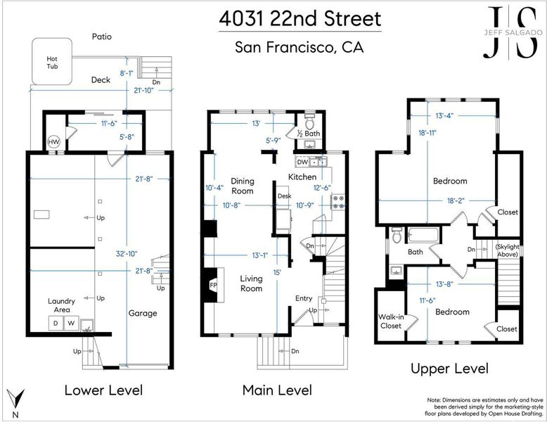 Elegantly updated Edwardian embraced by enchanting views, exceptional finishes, and an excellent location on the border of two extraordinary neighborhoods: Noe Valley and Eureka Valley. The tree-lined street and stately facade set the tone for this impeccably maintained home with the perfect balance of old-world warmth, modish flair, and open floor plan. An inviting entryway opens to a formal living room with fireplace and built-ins resplendent with period details, a dining room with distinctive views adjacent to the conveniently located half-bath, a tastefully updated gourmet kitchen with high-end appliances and views, and gorgeous wood floors showered with natural light. The dramatic staircase with skylight tube leads to a large and flexible primary bedroom with inspirational views, plenty of closet space, a remodeled bathroom, and the second spacious bedroom overlooking 22nd Street and beyond. The upper level of the home also has wood floors and is graced with an abundance of natural light. There is a garage with interior access, plenty of room for storage, possible potential for future expansion, and with direct access to the intimate yard space with a hot tub. There are too many upgrades to list including AC so don't miss this special property that is close to everything!