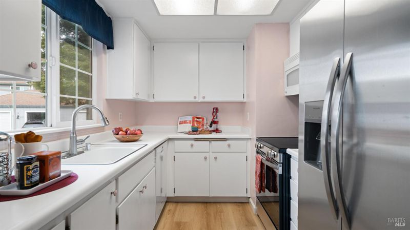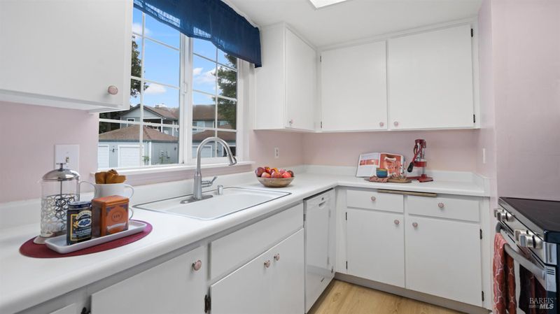 Located in popular Bridgeview Heights in Benicia, tucked away in a quiet residential neighborhood. Enjoy gorgeous water views as you head out for the day or relax at the nearby park. This mostly remodeled, end-unit, bottom-floor condo has newer windows, hot water heater, refrigerator, range, flooring, paint (inside and out), bathroom vanities and AIR CONDITIONING! The attached deck is set amongst the redwood trees and a wood burning fireplace gives it a cozy feel. And, there's even a peek-a-boo view of Suisun Bay! The one-car garage is conveniently located just across from the front door and has an additional dedicated parking space on the driveway. Really a charming little home with lots of natural light....come see for yourself!