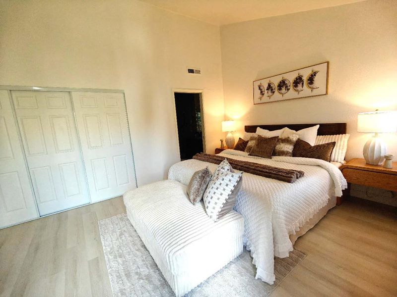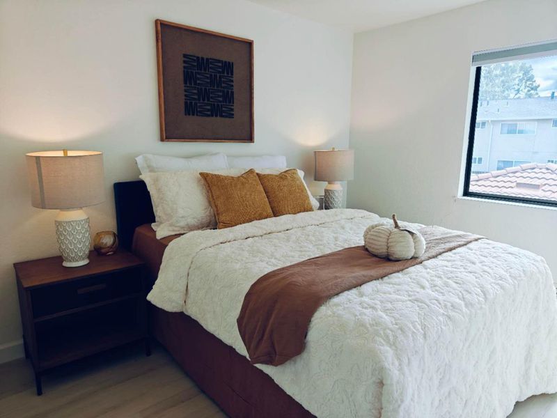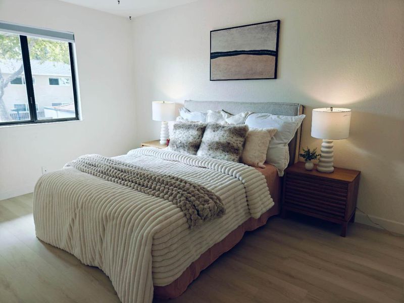 Recently remodeled end unit townhouse in a very quiet and convenient location! Walking distance to Downtown Mountain View, just minutes to Google office, Computer History Museum and Shoreline Park. Easy access to public transportation and Highways 101 and 85. This updated townhome offers three bedrooms and two-and-a-half bathrooms. On the main level, the living room features a central electric fireplace, the dining room connects to the kitchen for easy entertaining, and the family room sits open to the kitchen with a wide sliding glass door to the private backyard and garage. Upstairs, the spacious primary suite has two extensive closets and a large recently rebuilt balcony, while two additional well-sized bedrooms with a shared full bath. This home is move in ready!