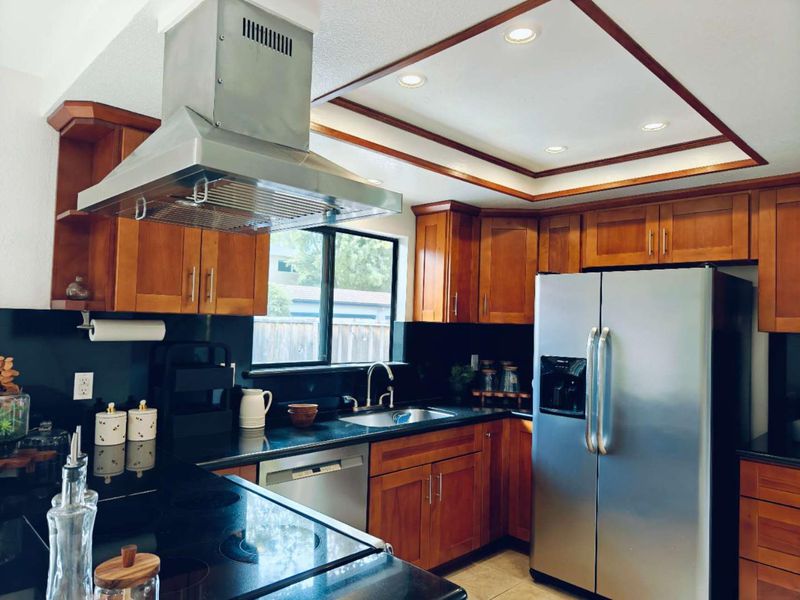 - Cooktop - Electric, Countertop - Quartz, Dishwasher, Oven - Electric, Refrigerator