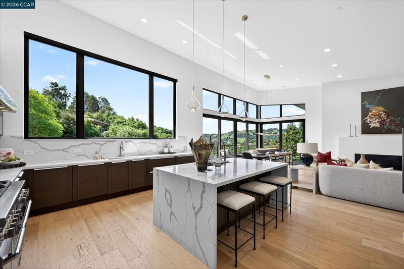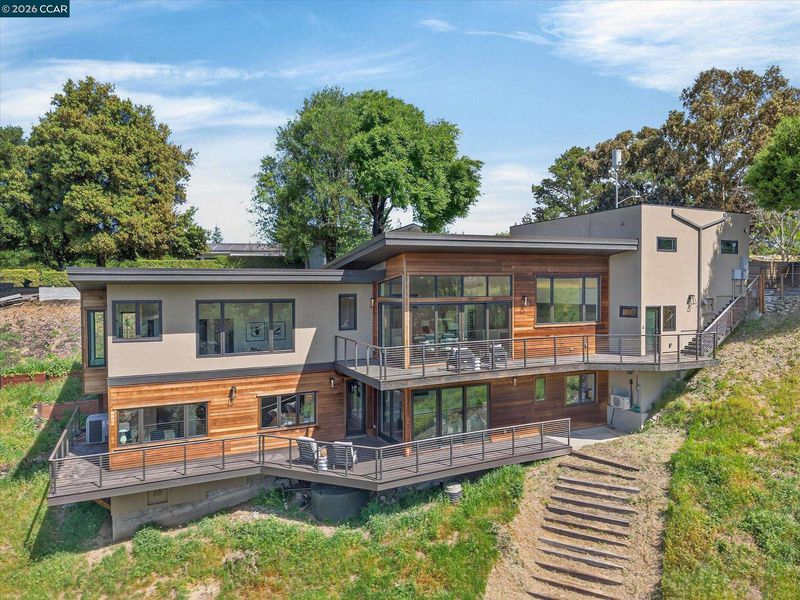 Stunning contemporary state of the art home built in 2020 with gorgeous panoramic views and exceptional craftsmanship throughout. Approximately 3788 sf set on a .47-acre lot with 5 bedrooms and 4.5 baths, including a private 1 bedroom, 1 bath in law apartment with its own outdoor entry plus a main level primary suite and lower-level family room serving the three-bedroom wing. Dramatic great room with soaring 14-foot ceilings, floor to ceiling windows, linear gas fireplace and designer lighting opens to a European inspired gourmet kitchen with premium appliances and custom finishes. Multiple bamboo decks, spectacular views, large level yard, two car garage and minutes to Highway 24. Top schools include Glorietta Elementary, Orinda Intermediate and Miramonte High School.
