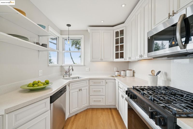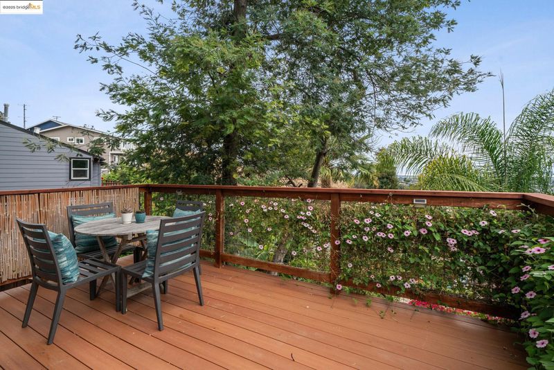THE WOW FACTOR IS HERE! A spectacular VIEW home filled with gorgeous updates and a stand alone ADU with VIEWS! Tucked into the Oakland Hills, this lovely home includes an updated main house with 3 bedrooms, 2 baths, 3 decks, large front patio and a landscaped fenced yard. The main level features 2 bedrooms and 1 updated bath, living and dining room, a wall of windows to enjoy the always spectacular and ever changing views. Be wowed by the stunning sunsets! A refreshed kitchen features new quartz counters, brand new hardwood floors, new stove, fridge and microwave; perfect for the home chef. A cozy spot serves as the perfect breakfast nook and opens to a deck to enjoy the VIEWS! The lower level includes a private primary retreat with large closet, 2 storage areas, full bath and a kitchenette. The laundry is located on this level. Doors open to the large lower deck. The terraced lower garden is full of native plants and flowers. This large property includes a bonus ADU/CASITA with one bedroom, a full bath, kitchen and living room. Your guests will feel so special staying here with its private deck and views of the Bay. Other features include owned solar, multiple interior storage areas, sewer compliant, no knob and tube, as well as 2 car garage parking. A SPECIAL HOME!