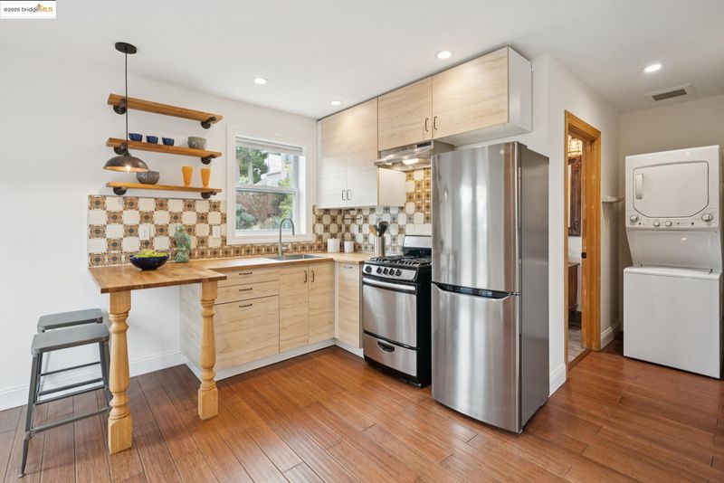 - Dishwasher, Free-Standing Range, Refrigerator, Dryer, Washer, 220 Volt Outlet, Breakfast Nook, Counter - Solid Surface, Range/Oven Free Standing, Updated Kitchen