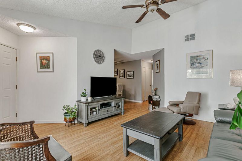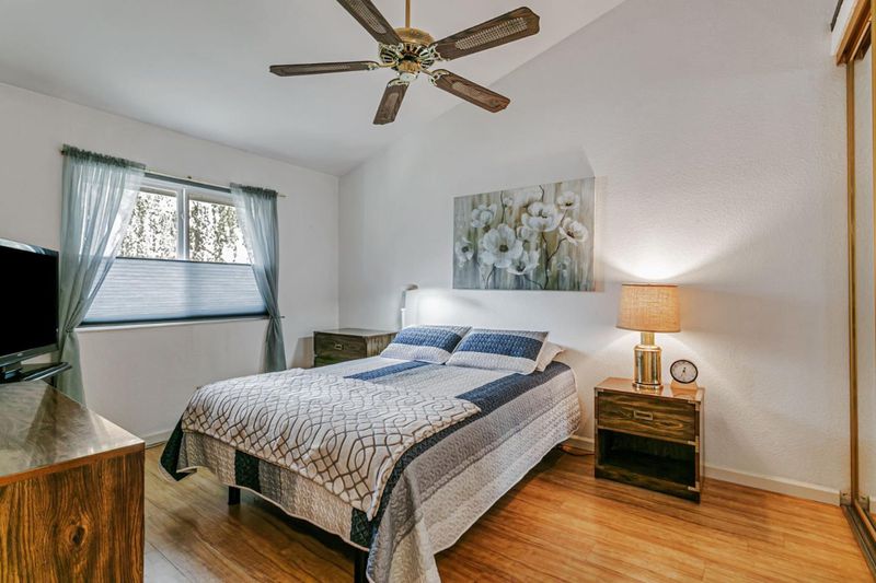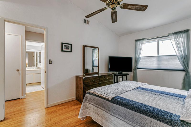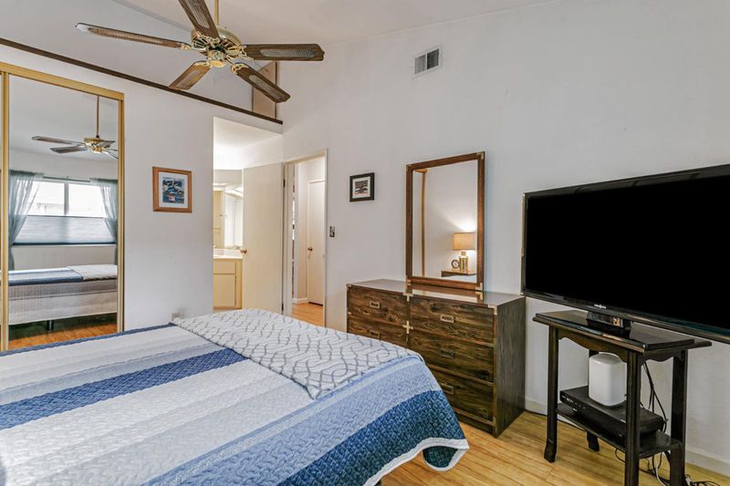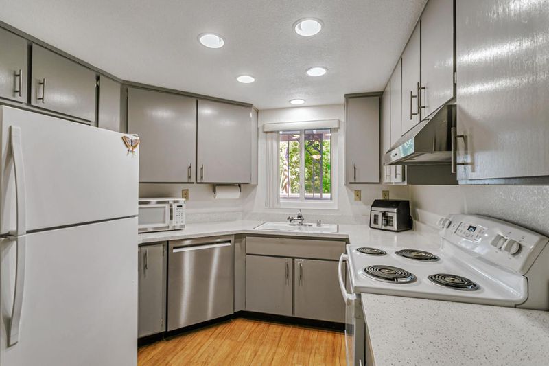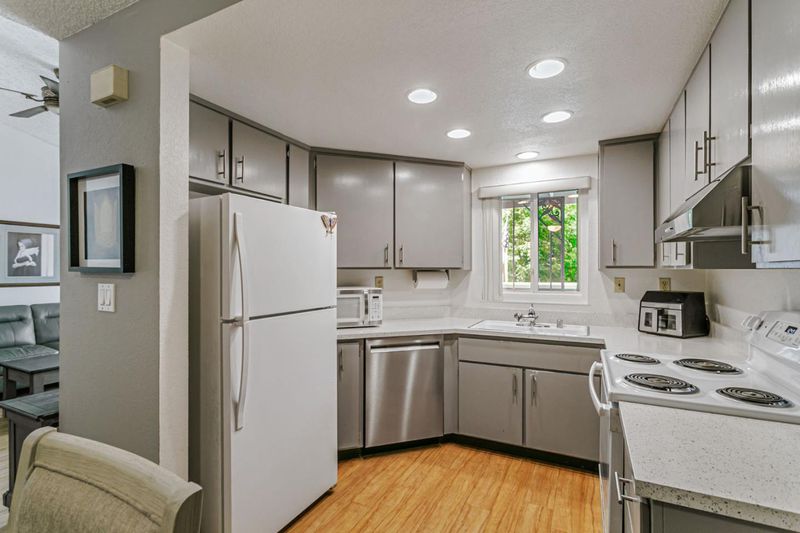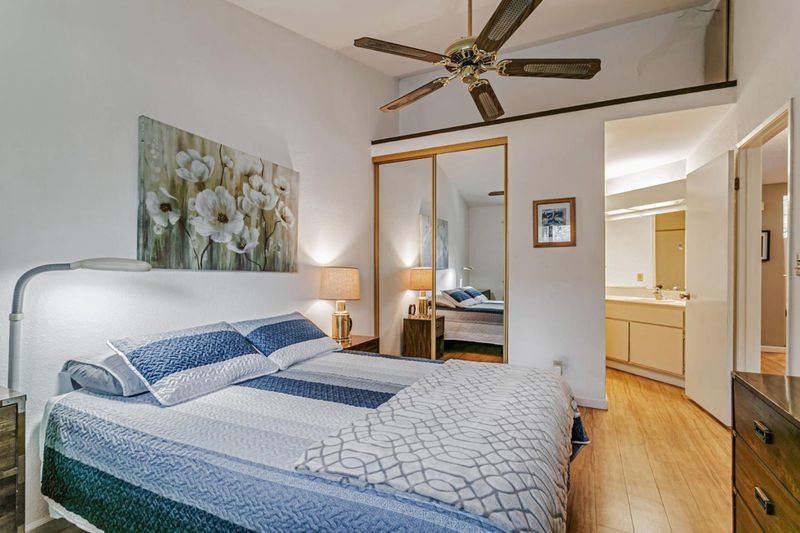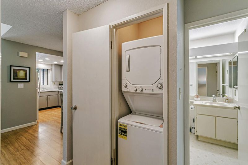 Located near vibrant downtown Willow Glen and downtown San Jose, this gated community offers mature landscaping, tall trees, and abundant open space. This home enjoys one of the best locations in the community, quietly tucked away in the center, far from busy surrounding roads. Inside, the well-designed floor plan features newer laminate floors, an updated kitchen with quartz counters, all newer appliances including electric range & dishwasher, plus newer double-paned windows and an HVAC system with central AC. Tall ceilings gives a spacious feeling as well as filling the room with light. Two bedrooms include a spacious primary with en-suite bath. Convenience continues with in-unit washer/dryer. A separate dining nook makes working from home easy, while the nearby train and light rail stations simplify commuting. Modern upgrades, peaceful surroundings, and quick access to shopping, dining, and downtown energy make this condo a real gem.