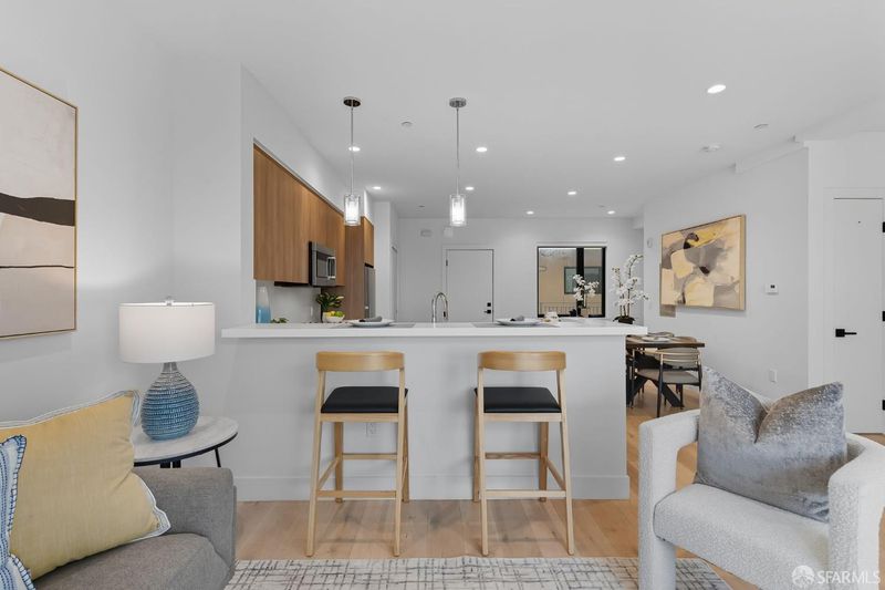 Transparent price! Experience the best of Berkeley living in this rare 2020-built modern condo at Bloom Berkeley. Step into a spacious, open-concept living and dining space equipped with top-of-the-line Bosch and Liebherr kitchen appliances, perfect for creating culinary masterpieces. Enjoy the convenience of an in-unit washer and dryer, built in closets in both bedrooms and the entry, sturdy white oak flooring, secure indoor 1-car parking, and a shared rooftop deck. This location is an urbanite's dream, with a high walk score that puts you within easy reach of Berkeley's best. Stroll to Berkeley Bowl West for your groceries, explore the trendy shops and boutiques on vibrant 4th Street, or discover an endless array of cafes, restaurants, and parks just moments away. Commuting is a breeze from this central location, providing quick and easy access to major Bay Area companies and the UC Berkeley campus. This property combines modern luxury with the rich culture and energy of Berkeley, offering a lifestyle of unparalleled convenience and comfort. One of the exterior photos is a render from the developer.