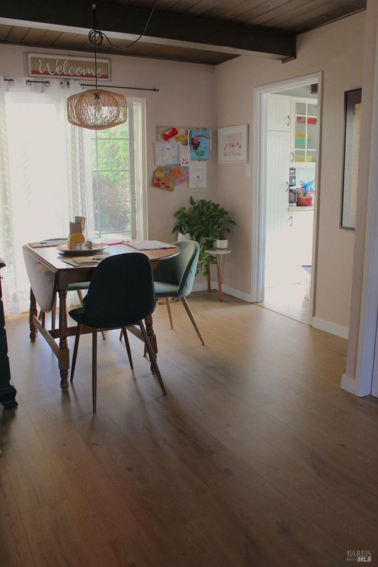 This 3-bedroom, 2-bathroom home features exposed wood-beam ceilings, a 2-car garage, and thoughtful updates throughout. Recent renovations include new flooring, an updated kitchen, remodeled primary suite and main bath, plus a brand-new roof. The landscaped front and backyard offer mature trees for privacy, automatic irrigation, a stamped concrete patio, and a dog runperfect for relaxing or entertaining. Ideally located near North Concord BART with easy access to Hwy 4 and 242, this home combines comfort, style, and convenience.