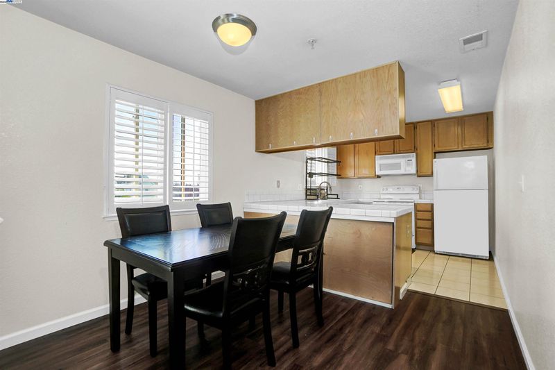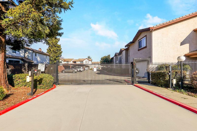 Welcome to this cozy and affordable home, nestled in a secure gated complex on a quiet street. Conveniently located near local freeways and within walking distance to the BART station, this home offers the perfect mix of tranquility and accessibility. Inside this second-level unit, you’ll find an open floor plan with laminate and tile flooring, creating a practical and inviting living space. The kitchen features tile countertops, ample cabinet storage, and a functional layout perfect for meal preparation. A sliding glass door fills the space with natural light and leads to a charming patio—great for relaxing, adding greenery, or accessing the extra storage closet. The unit includes a laundry closet with a washer and dryer for added convenience. Both bathrooms are updated with modern cabinetry, sleek countertops, and marble flooring. The master bedroom features a walk-in closet, offering plenty of storage. You’ll also enjoy two assigned parking spaces, one of which is covered. This delightful home is a wonderful opportunity to settle into a space that feels truly yours.