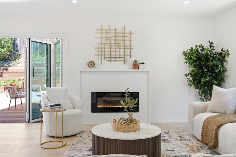 NEW Listing! Fully remodeled mid-century modern gem in The Oakland Hills! One-story, 3 Bedrooms|2 Full Baths. Designer accent walls, French doors, fireplace. Fully updated kitchen: ALL NEW quartz island, double frig/freezer, wine frig and more!