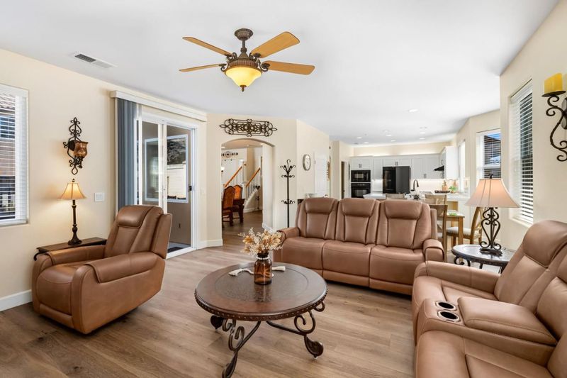Remarkable Quality and Comfort Await! Step inside this impeccably maintained home and you'll immediately notice the attention to detail and luxurious features throughout. The updated kitchen is a chefs delight with Cambria quartz counters, rich cabinetry featuring soft-close doors and drawers, and a 36" cooktop ready for gourmet meals. Luxury vinyl plank flooring flows seamlessly through the home, combining style with durability and easy care. The inviting family room centers around a cozy gas log fireplace, while the elegant dining room offers the perfect setting for gatherings. A convenient downstairs bedroom with its own full bath provides comfort and flexibility for guests or multi-generational living. Upstairs, retreat to your spacious primary suite with a lavish bathroom designed for relaxation, complete with soaking tub. An adjoining bonus room offers endless possibilities, home office, nursery, reading nook, or craft space. Additional bedrooms and a versatile loft create a floor plan that truly fits your lifestyle. Outdoor spaces are designed for easy maintenance, from the charming front courtyard to the backyard that's perfect for entertaining. Recently painted inside and out, this home is move-in ready and waiting for you. Make this beautiful property yours today.