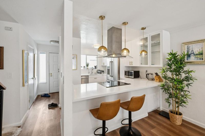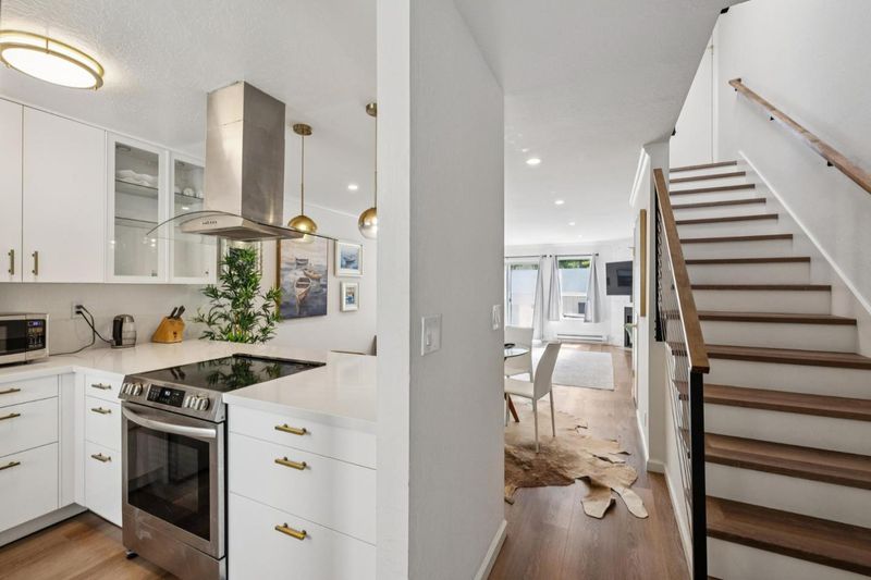Experience modern living in this beautifully remodeled townhouse, featuring an inviting open floor plan, a cozy fireplace, and a spacious private balcony perfect for relaxing or entertaining. Enjoy a gourmet kitchen with sleek quartz countertops, new cabinetry, and high-end stainless steel appliances, including a refrigerator and dishwasher. Recent upgrades include new flooring, modern high-end stair railings, bathroom vanities, a high-quality washer and dryer, and dual skylights that flood the home with natural light. Located in a boutique complex of just 28 units, residents enjoy a community swimming pool and proximity to the vibrant shops and dining of downtown Palo Alto or Menlo Park. This is an exceptional opportunity for comfort, style, and premier Peninsula living.