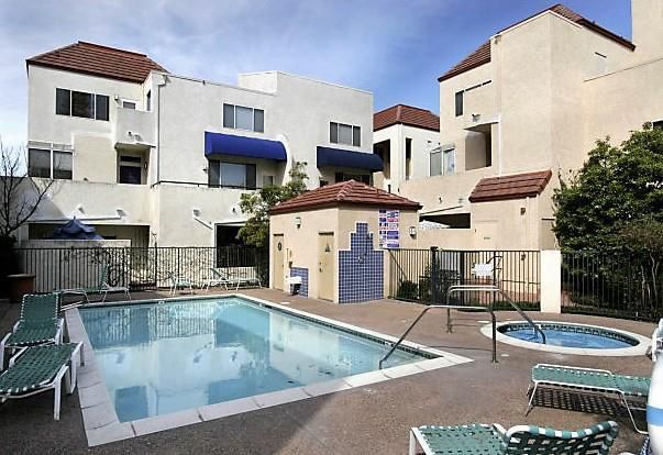 This 2 story bright townhouse style home was one of the models for the complex. Green house windows, large sliding glass doors & high ceiling flood the home in sunlight. The unit features a spacious living/dining area, fireplace, balcony, extra storage, new paint, wood floors throughout 2 master bedrooms, washer/ dryer, A/C, recessed lighting, & skylight. Palo Alto Central boasts great landscaping with plants, fountains, a rose garden, swimming pool, Jacuzzi & a recreation/conference room. Security gates & underground secured parking. Located on California Avenue's Business District. everything is walking distance. Mollie Stones, Country Sun, coffee shops, the post office, the park and fine dining. The farmers market is every Sunday year round with music, fresh organic produce, flowers and an assortment of foods to sample. You can walk, bike or take a free Shuttle to Stanford or Cal Train to San Francisco.