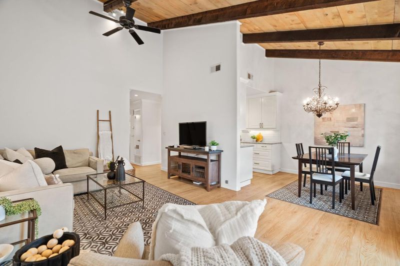 Beautifully updated 2BD/1BA top-floor condo with soaring vaulted ceilings in a prime Mountain View location! Enjoy two pools, gym, billiards room, lush greenbelts, car wash stations & more. Next to the new Community Center with tennis courts, parks, and recreation. Close to Caltrain, shopping, dining & major tech. Stylish, move-in ready living in the heart of Silicon Valley!
