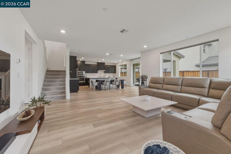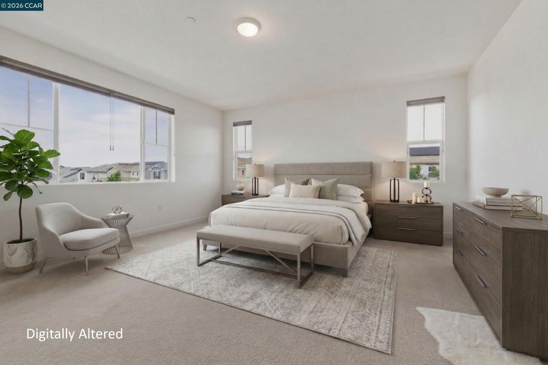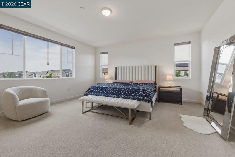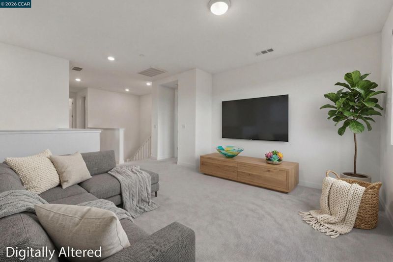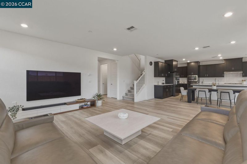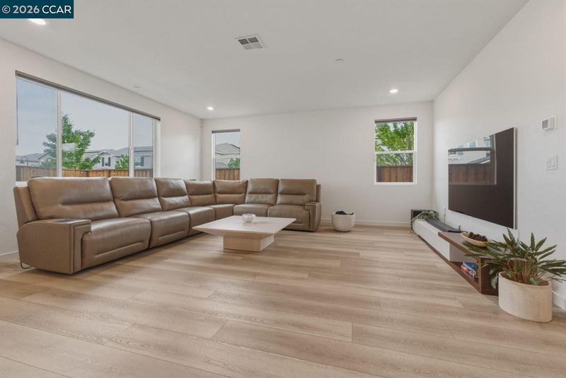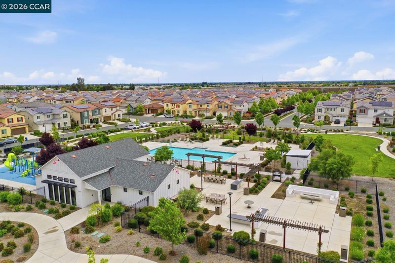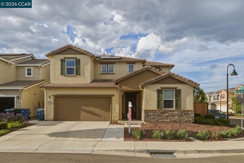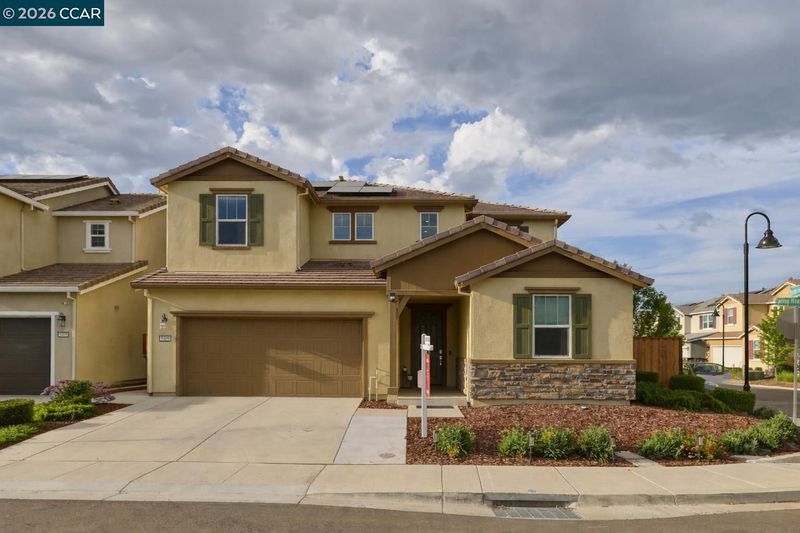 Welcome to elevated living in the gated community of Shine at Cielo—where style, comfort, and convenience come together within the sought-after Brentwood School District. This stunning, nearly new home blends modern design with everyday functionality and includes approximately $80,000 in upgrades, including owned solar for energy savings. The open-concept layout seamlessly connects the living, dining, and kitchen areas. The sleek kitchen features quartz countertops, a full subway tile backsplash, and a large walk-in pantry (your secret snack headquarters). Bright and inviting living spaces offer plenty of room to relax or entertain. Downstairs includes a bedroom with a private full bath—ideal for guests or multi-gen living—plus a versatile bonus room perfect for an office, den, or playroom. Upstairs, enjoy a convenient laundry room (right where you actually need it!), spacious loft, and a primary suite retreat with an oversized walk-in closet that might just inspire a little wardrobe upgrade. The low-maintenance backyard features a covered patio, stylish tilework, and turf—perfect for relaxing without the upkeep. Community amenities include a pool, clubhouse, park/playground, sports courts, and BBQ areas. Minutes to CA-4, shopping, and dining—this home checks all the boxes.