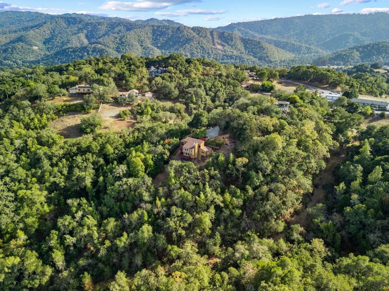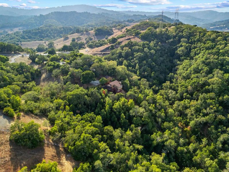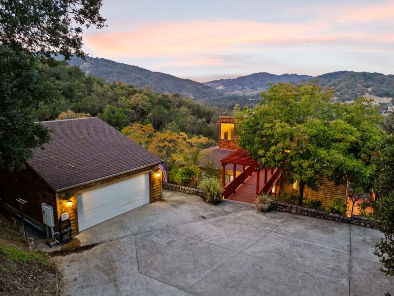 Welcome to 9040 El Matador Dr. A serene 3-acre retreat at the end of a quiet cul-de-sac in Gilroy, surrounded by nature's beauty and peaceful stillness. With panoramic views from nearly every room and five expansive decks, this home invites seamless indoor-outdoor living. Warm hardwood floors, granite slab countertops, and two fireplaces add charm inside, while the primary suite offers a jetted tub with stunning views perfect for quiet moments of relaxation. Thoughtfully designed to blend with the landscape, the property features a welcoming stone entry, an oversized 2+ car detached garage with a workshop and storage loft accessible with stairs, and expansive wooded grounds including a private shooting range. Just minutes from town yet feeling worlds away, this one-of-a-kind property offers unmatched privacy, natural beauty, and the best of peaceful country living.