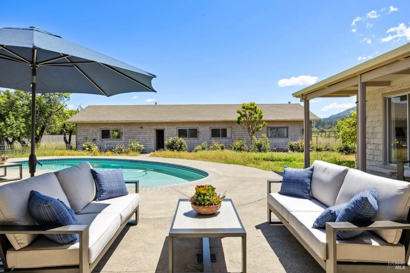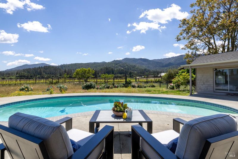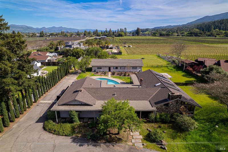 Perfectly positioned on one of Napa Valley's most coveted streets, this single level ranch style home enjoys sweeping vineyard vistas and mountain views on approximately 1.3 acres, just minutes from downtown St. Helena. The 3,800 sq. ft. residence features four bedrooms and four full bathrooms, a vaulted ceiling living room with fireplace, formal dining room, and a kitchen with breakfast area that opens to a spacious family room with a second fireplace. Outdoor living is highlighted by a solar heated pool, and one car garage. A separate ADU unit with hardwood floors, walk-in closet, and full bath provides flexibility for visitors or rental use. Zoned LR-1A with city sewer connection available and potential eligibility for an Urban Lot Split, this property offers a rare opportunity to enjoy the heart of wine country, moments from Crane Park and with easy access to Calistoga, Yountville, world class restaurants and wineries!