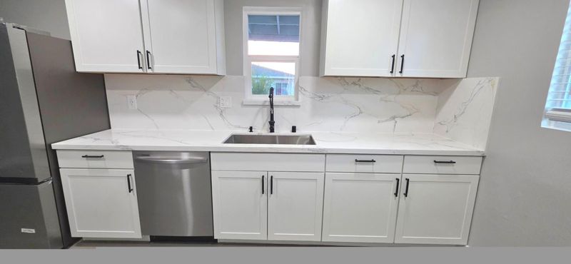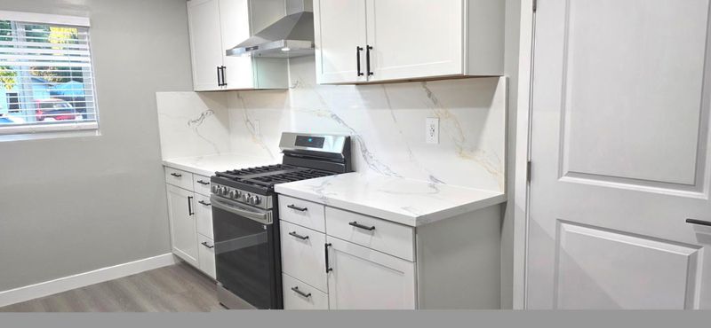 - Countertop - Quartz, Dishwasher, Garbage Disposal, Hood Over Range, Oven Range - Gas, Refrigerator