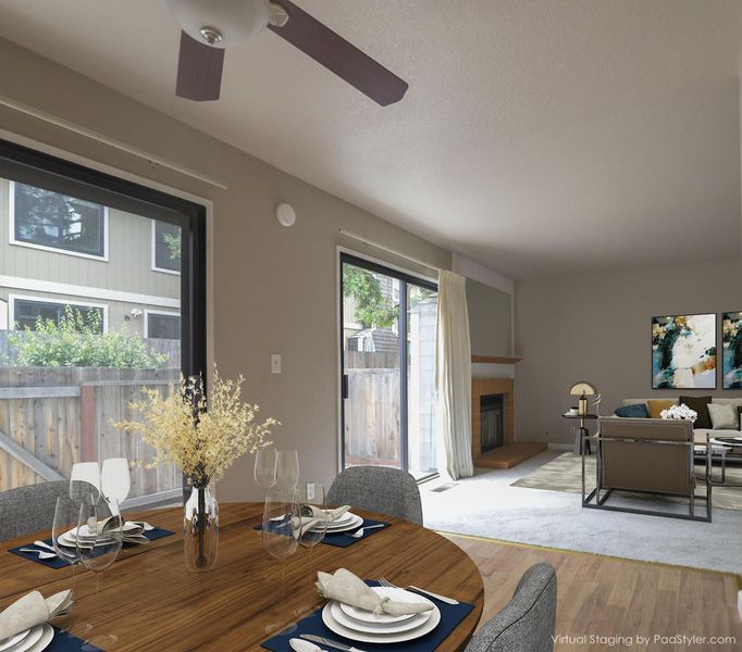 NO Showing until Open House on 10/4/2025. All Staging shown is virtual. When you enter 584 Valeri Ruth Ct, you will be struck by this light and bright spacious townhome. This light-filled townhome blends comfort, style, and convenience perfect for todays lifestyle. The spacious living room and adjoining dining area receive bright natural light from the large sliding doors that look out on your own private patio. This home has been fully updated with fresh paint, new carpet, new bathroom vanity, interior doors, new electrical sub-panel. New stainless oven/range and dishwasher brighten up the kitchen. Inside laundry. Washer/dryer and refrigerator are included. The two spacious ensuite bedrooms have soaring vaulted ceilings and large windows.
