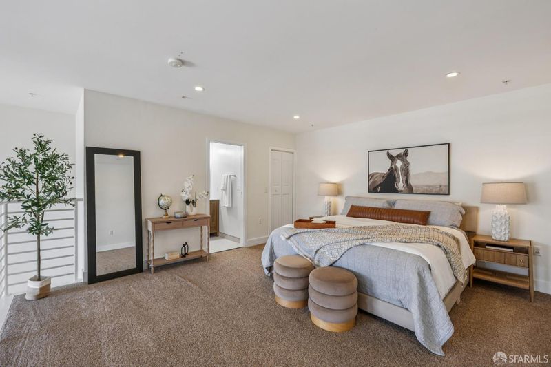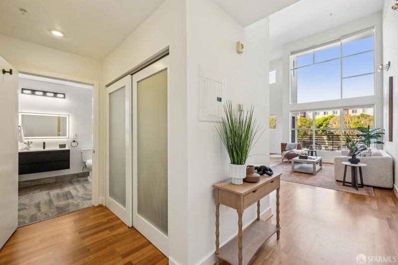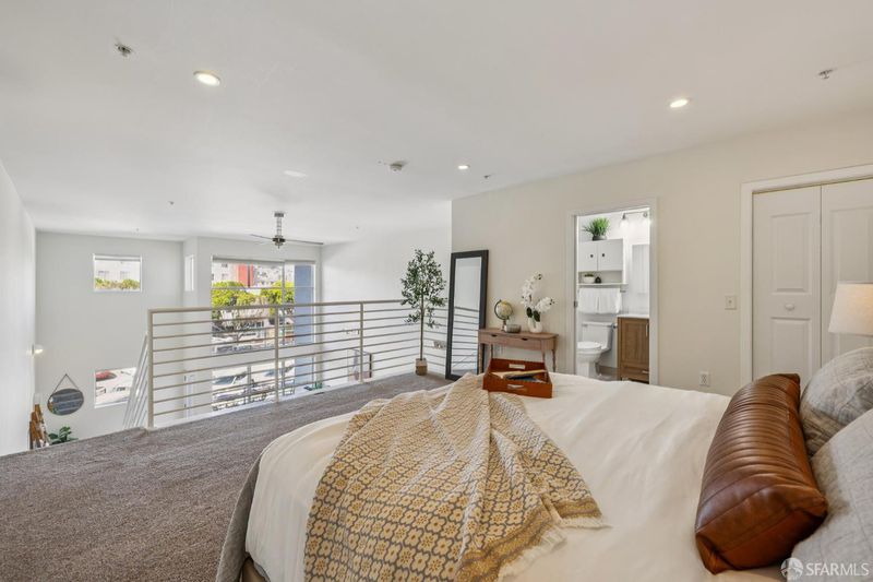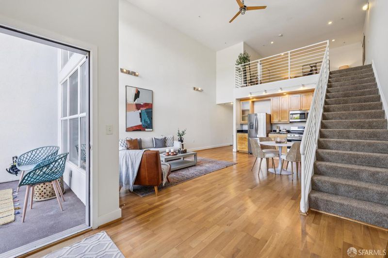 Experience chic urban living in this stunning 1-bedroom, 1.5-bathroom loft, perfectly situated in the heart of the vibrant Mission District. Thoughtfully updated, the main level features a stylish half bath with an in-unit washer/dryer, and an open concept living and dining area bathed in natural light. Floor to ceiling windows frame city views, including the iconic Sutro Tower, while the private balcony offers the perfect spot to relax or entertain. Upstairs, the airy primary suite boasts a generous closet and en-suite bathroom with a shower-over-tub. This home also includes one-car parking and a dedicated storage unit for ultimate convenience. Step outside your door and enjoy the best of the Mission Gus's Market, trendy cafes, celebrated restaurants, and lively night life all just moments away, with easy access to public transit and the city beyond.
