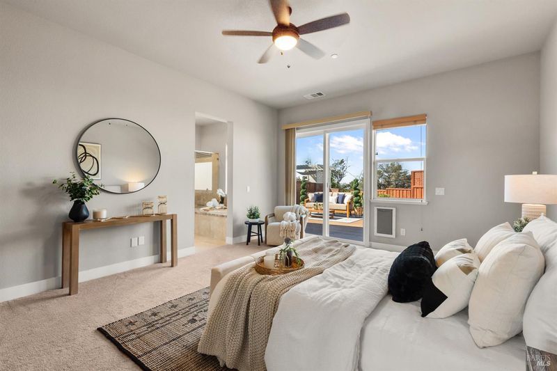 First Showings of this Gracious, Spacious Home! This beautifully designed single-level home offers 2,726+- square feet of comfortable, stylish living space with four spacious bedrooms and three and a half bathrooms. Wide plank white oak floors and recessed lighting set a warm, inviting tone throughout the open floor plan. The kitchen is a true showpiece with stone countertops, high-end stainless steel appliances, and plenty of space to cook and gather. Just off the kitchen, a gorgeous wet bar makes entertaining effortless. The living area flows seamlessly to the backyard, where you’ll find a large deck, a flat usable yard, and tranquil peek-a-boo views of Santa Rosa. The primary suite feels like a retreat with its spa-like jetted tub. Dual pane windows, central heating and air keep the home comfortable year-round, while an attached two-car garage adds convenience and storage. And with no steps anywhere in the home, accessibility and ease of living are built right in.