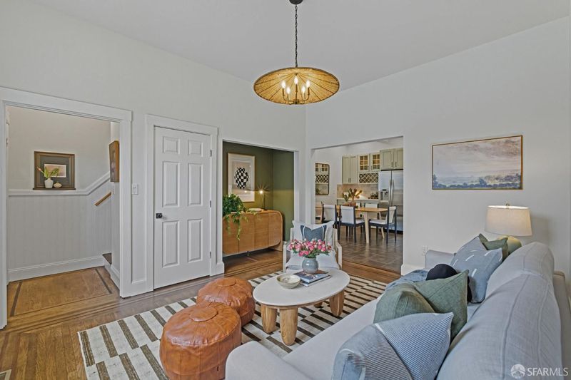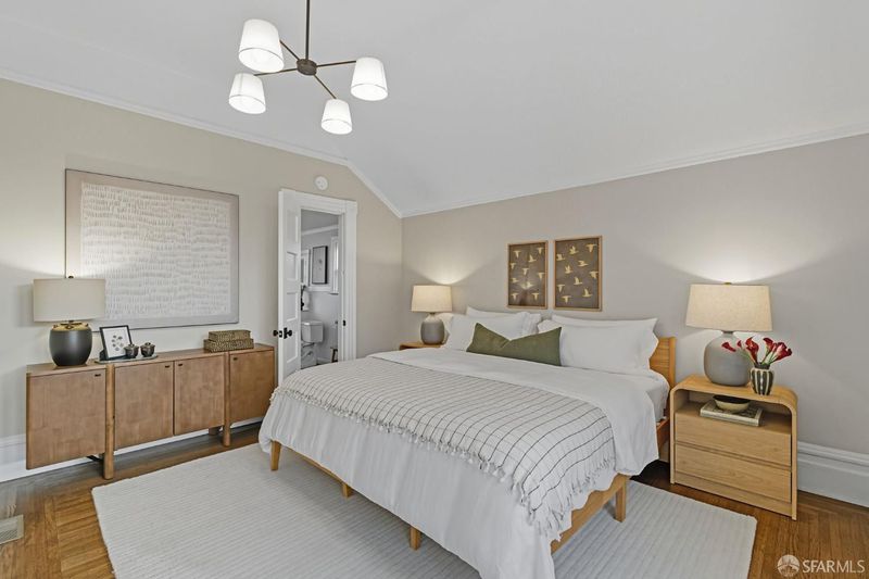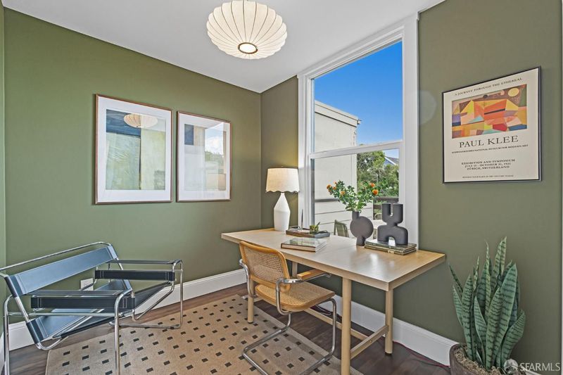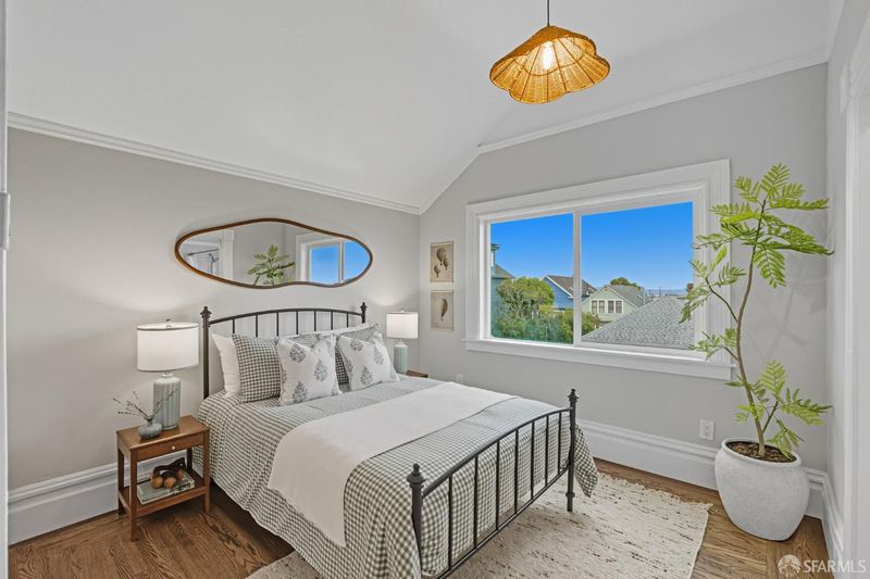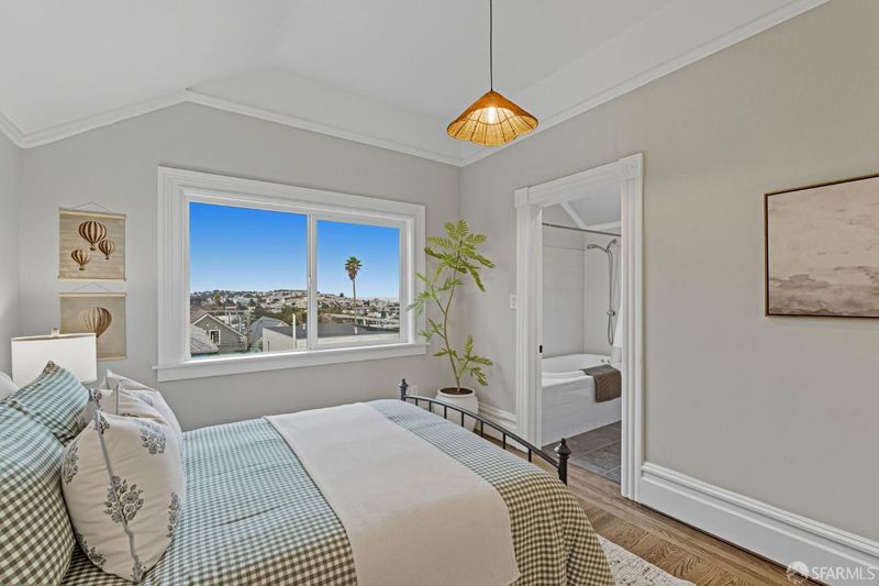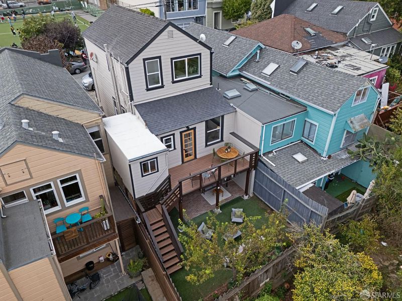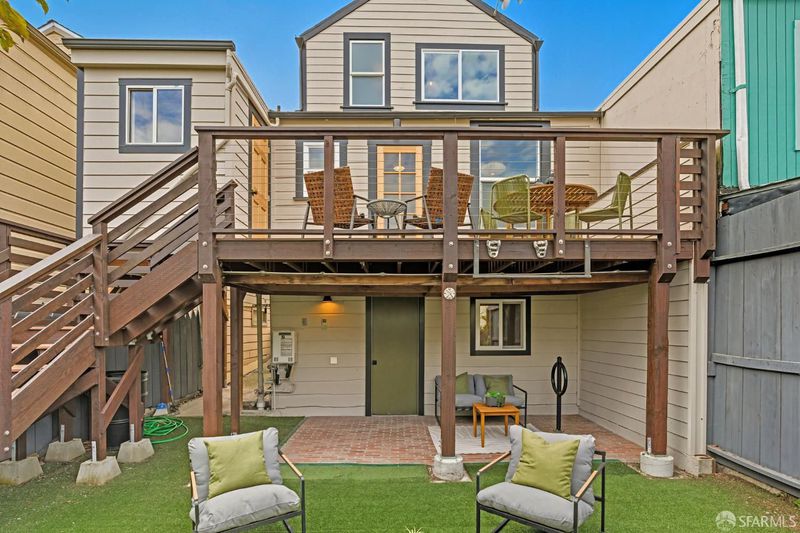 In one of South Bernal's most walkable pockets just off Cortland Ave on a flat, tree-lined block sits this luminous, updated SFH. At nearly 2,000 sq ft, this 3++ bd/3 ba residence blends stylish interiors w/ serene outdoor spaces in a flexible layout. The main level boasts a west-facing living room flooded w/ light, flowing into a chef-worthy kitchen w/ refined hardware, abundant counters & chic built-ins. A glass door opens to an expansive deck, perfect for entertaining, overlooking a landscaped yard ideal for play, yoga or al fresco dining. Also on this lvl: full ba, laundry, & flex office/guest rm. Upstairs, 2 tranquil bds share a light filled Jack-and-Jill ba w/ city views, each offering privacy & calm. Downstairs reveals versatile space w/ its own full ba + direct yard access, plus 2 finished rms (w/ permits) perfect as gym, media, guest suites or bdrms. Outdoors, a sun-soaked yard w/ mature plum tree & drought-tolerant landscaping provides a peaceful retreat. Carport + ample street pkg, w/ quick access to 101/280, Alemany Farmers Market & Cortland shops complete this beautiful home. Rare combo of scale, style & indoor-outdoor flow equally suited for growth, entertaining, or retreat!