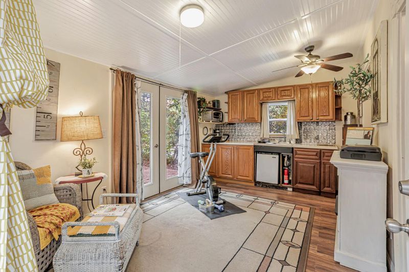 Own a slice of country heaven with this adorable cottage featuring central air conditioning. Nestled on 1.4 acres in historic New Almaden, the home backs up to Quicksilver Park. It offers incredible views, privacy, and a rare opportunity to enjoy the country lifestyle while still being just minutes from town. The garage expands your living options with a kitchenette, closet, and flexible space perfect for an exercise room or whatever your heart desires. A detached office provides a quiet environment for working from home, while the separate artist studio is ideal for creative pursuits. Relax on your porch beneath the stars and watch the local wildlife pass by. Alamitos Creek runs nearby, and you're just down the road from the famous La ForĂȘt restaurant, as well as miles of scenic hiking trails. The New Almaden Community Club provides a gathering place for neighbors to celebrate the holidays, featuring family-friendly events such as the Easter Egg Hunt, 4th of July BBQ, New Almaden Day Parade, and Christmastime visits with Santa Claus. Families will also appreciate the excellent schools: Graystone Elementary, Bret Harte Middle School, and Leland High School. This is a very special and unique property, a perfect blend of charm, opportunity, and natural beauty.