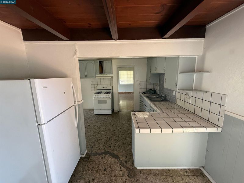 - Free-Standing Range, Refrigerator, Dryer, Washer, Gas Water Heater, 220 Volt Outlet, Tile Counters, Range/Oven Free Standing