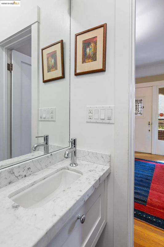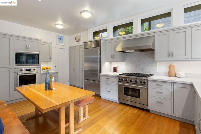 On the bank of Harwood Creek in one of Berkeley’s most beautiful neighborhoods close to all the pleasures of the Claremont, 20 Oakvale Avenue offers elegant early 20th Century architecture, extensive 21st Century renovations, and quiet, leafy seclusion. From the original 1910 design by builder Louis Engler to the extraordinary 2015 kitchen designed by Bennett Christopherson, this home combines easy, modern living with classic architectural details. The gracious central hallway is flanked by the living and dining rooms, each with a fireplace, high coved ceiling, and a wall of windows. The dining room opens through the TV sitting room to the walled, landscaped rear deck beyond, itself a lovely outdoor room. The kitchen - large, handsome, and filled with light from lofty clerestory windows - invites informal gatherings and serious cooks. Ascend the central staircase to three bedrooms and two bathrooms, including the expansive primary suite with bright rear sunroom, sweet front balcony alcove, and spacious, updated bathroom. Or take the elevator, which opens to the driveway, the dining room, and the primary suite. Off the rear deck, converted in 2023 from the original garage, the fully permitted studio ADU with kitchen, laundry and bathroom invites income, guests or caregivers.