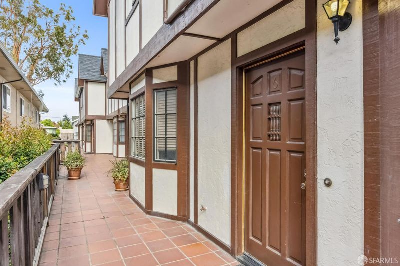 Terrific bi-level townhome at the rear of the building. This bright end-unit features a spacious, wraparound private patio, perfect for indoor/outdoor living. Features include: beautiful newly refinished wood floors throughout, living room w/ wood-burning fireplace, updated kitchen with new quartz countertops, a breakfast bar and separate dining area. Upstairs are two bright bedrooms, both with walk-in closets, two bathrooms and laundry. Property comes with two parking spots and a central Burlingame location that can't be beat!