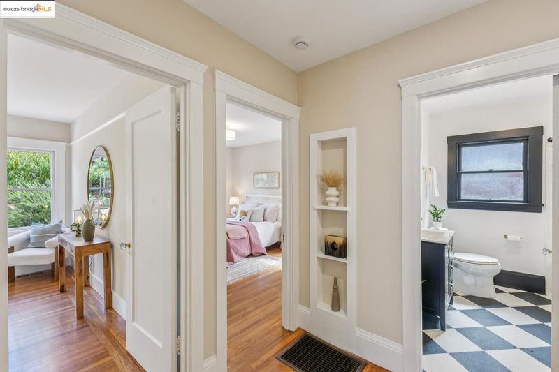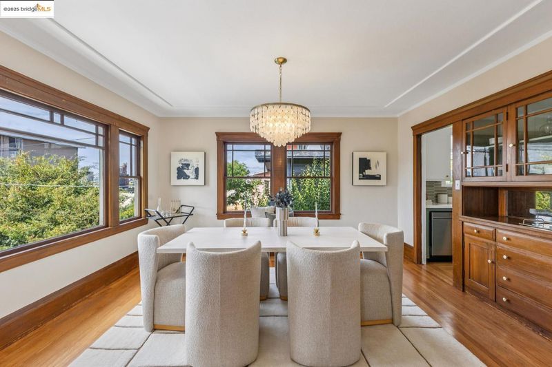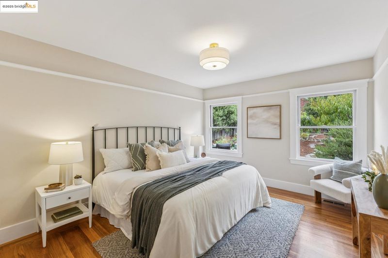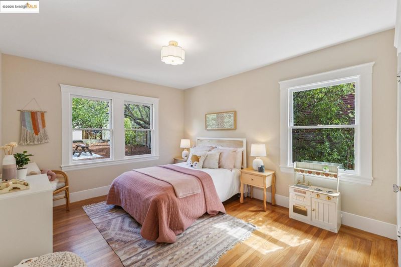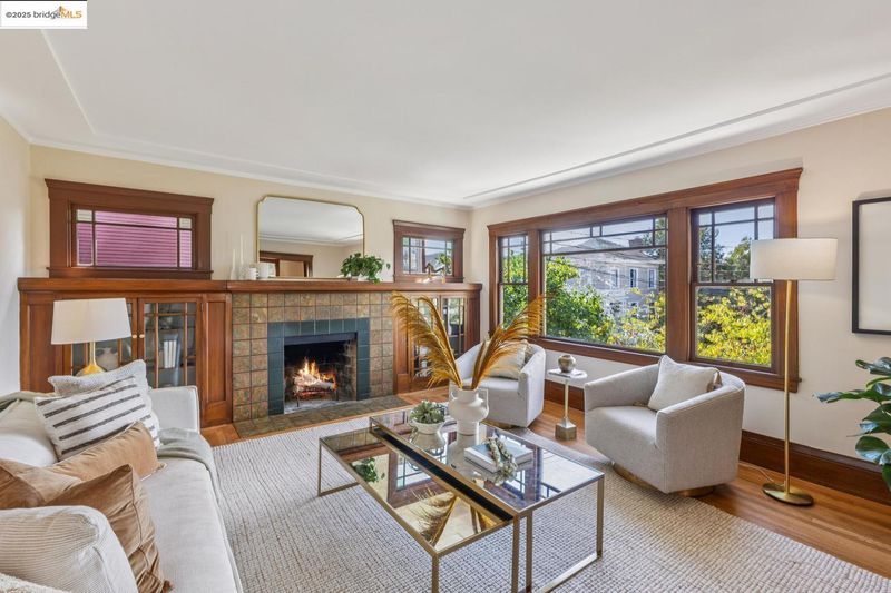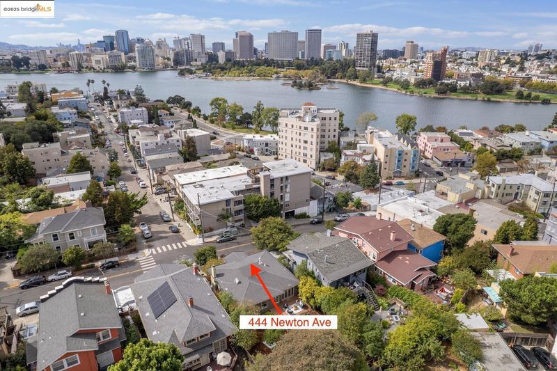 In a prime Cleveland Heights location just 2 blocks from Lake Merritt, 444 Newton Ave delights with Craftsman details, sun-filled rooms, great indoor-outdoor flow, and a truly special backyard. A welcoming enclosed sun porch is a perfect spot for slipping off shoes and backpacks as you enter. Inside, hardwood floors gleam, and a light-filled living room charms with built-in bookshelves and a working fireplace with classic tile. The dining room features a built-in china cabinet, and windows drench the room in natural light. From the large, thoughtfully updated eat-in kitchen, French doors lead to the deck and expansive yard where you’ll find a lawn area, planter boxes brimming with herbs and veggies, fruit trees, succulents, meandering pathways, a loveseat swing nestled among fragrant lavender, and a shed perfect for potting, painting, or a playhouse*. Back inside, two generous bedrooms enjoy views of the yard, and a charming updated bath with vintage vibes completes the main level. Downstairs, a 3rd bedroom, laundry, and a flex space with a separate entrance await. A 2-car garage and central AC bring ease to everyday life, and close proximity to the lake, shops, and restaurants invites you to explore all this wonderful neighborhood has to offer.