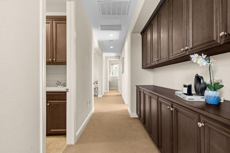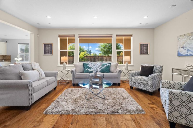 EXCLUSIVE HILLTOP VIEW HOME | Perched on a corner lot along a private hilltop culdesac, this spacious residence by Tri Pointe Homes faces the eastern foothills and provides spectacular vistas, indoor- outdoor spaces, and two primary suites (including one on ground level). A stunning entry leads into a series of gathering rooms, thoughtfully anchored by a spectacular kitchen remodel with vast island, Thermador® appliances, and walk-in pantry. Dual rear patios are perfect for entertaining! Escape to splendor in the upper primary suite, boasting an immense custom closet and palatial bath. Solar energy, tankless hot water, video doorbell, surveillance, and smart climate control provide cutting-edge convenience. Includes a three-car garage with EV charging, dual-sided fireplace, custom Graber® shades, approx. $70K of upgraded wood floors, upper laundry, home office, and versatile media/playroom. Minutes from parks, golf, shopping, commuter routes, and more!