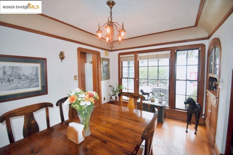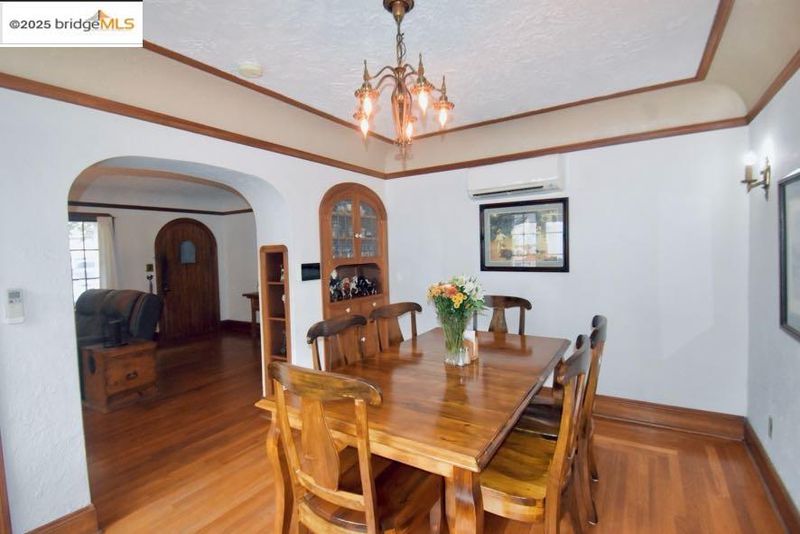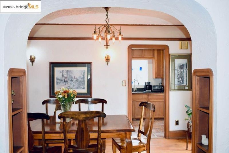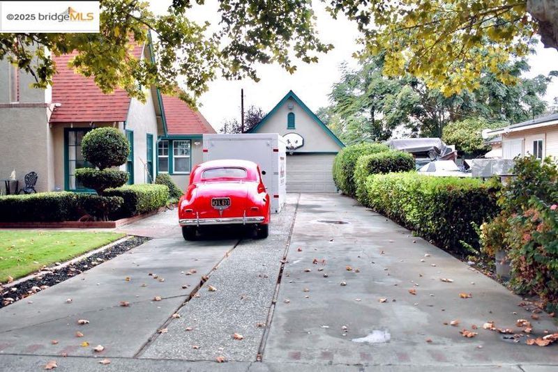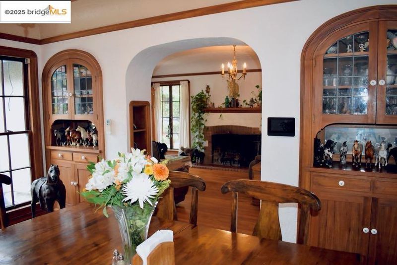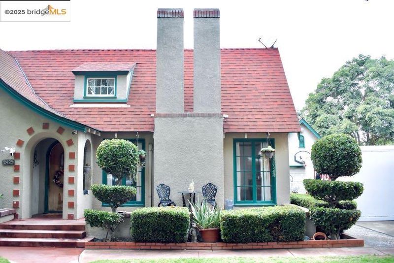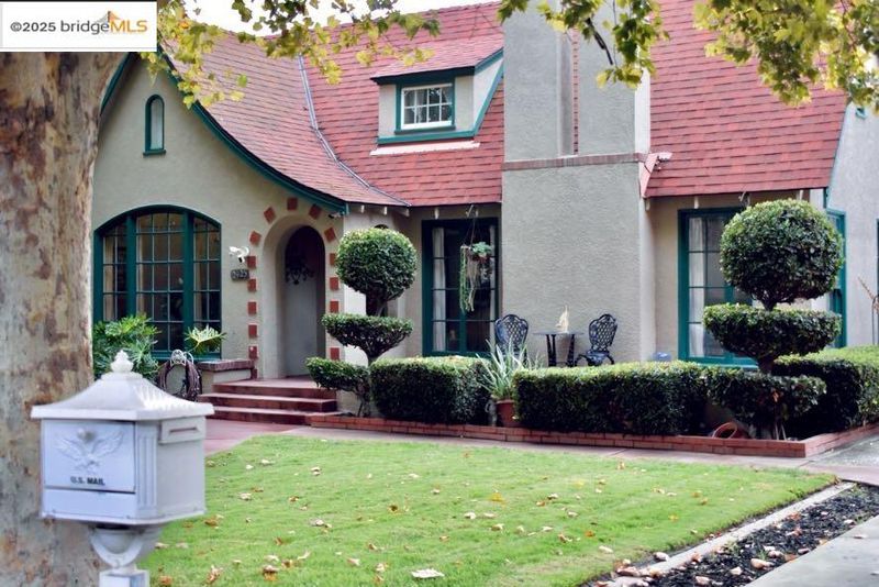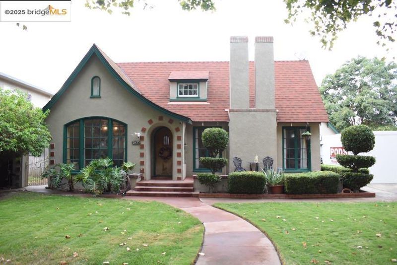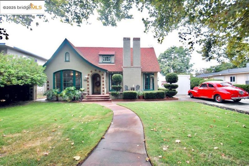 Embrace the charm of this remarkable Tudor-style 3 bedroom, 2 bath home in the heart of Hughson. This home offers graceful arched doorways, warm hardwood floors, and sunlit living spaces, every detail tells a story of craftsmanship and care. The inviting living room features a classic fireplace framed by picture windows, while the formal dining room opens to a bright, cheerful kitchen. The spacious primary suite includes a private vanity nook and serene backyard views. Upstairs, flexible bonus rooms provide perfect spaces for an office, guest area, or creative retreat. Outside, entertain or unwind under the covered patio, complete with a built-in brick BBQ and lush garden setting. A detached two-car garage with workshop potential adds both function and charm. Set on a large 9,147 sq ft lot on a tree-lined street, this home beautifully blends vintage character with comfort — a rare opportunity to own a true Hughson treasure.