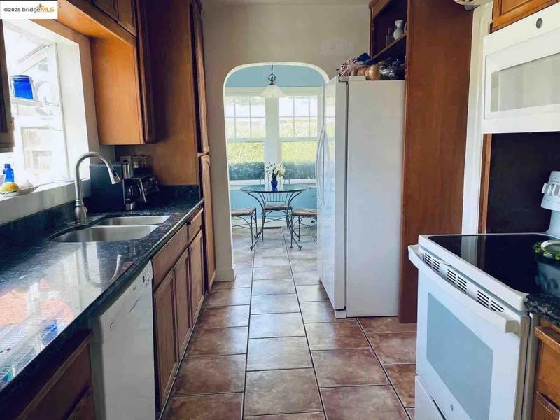 - Dishwasher, Electric Range, Microwave, Free-Standing Range, Breakfast Nook, Stone Counters, Electric Range/Cooktop, Disposal, Range/Oven Free Standing