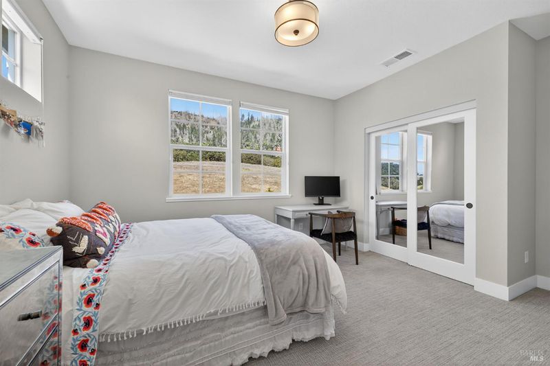 Nestled in the highly sought-after The Reserves in Skyhawk neighborhood, this exceptional home is zoned for Austin Creek Elementary, one of the county's top-rated schools. Featuring 4 bedrooms, 4.5 bathrooms, and over 3,100 sq. ft. of beautifully designed living space, it strikes the perfect balance of elegance and everyday comfort. The open floor plan showcases a chef's kitchen with premium KitchenAid appliances, dual ovens, and a rare double island, seamlessly connecting to a spacious living area with a cozy gas fireplace. A main-level bedroom with full bath, versatile upstairs loft, and multiple ensuite bedrooms provide flexibility for both family and guests. The expansive primary suite boasts a spa-inspired ensuite bath and walk-in closet, while additional highlights include tile flooring, central heat and air, and a three-car garage. Outdoors, enjoy year-round living with a built-in fireplace and serene views, with the added privacy of open space directly across the street. Set on a 0.22-acre lot and offered in excellent condition with washer, dryer, and refrigerator included, this home truly delivers the best of luxury, lifestyle, and location.