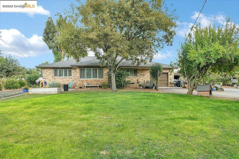 This beautifully updated 3-bedroom, 2-bath farmhouse sits on 1.39 acres of gated property with stunning Mt. Diablo views. Featuring a spacious open-concept layout filled with natural light, the home offers an updated kitchen, modern bathrooms, and a large family room with wood and laminate flooring. Multiple entertainment areas make it perfect for gatherings, while the blend of comfort and style creates true country living charm. Outdoors, the property is a rare find with a barn, an ADU for guests or rental income, and a separate 3-car garage with workshop space. Two garden areas, established fruit trees, and a horse pasture provide room for animals and sustainable living. There is also ample parking for RVs, boats, or other recreational vehicles. Situated on a private road, this home offers peaceful seclusion while remaining close to everyday conveniences. Don’t miss the opportunity to own this unique property that combines modern updates with country charm.