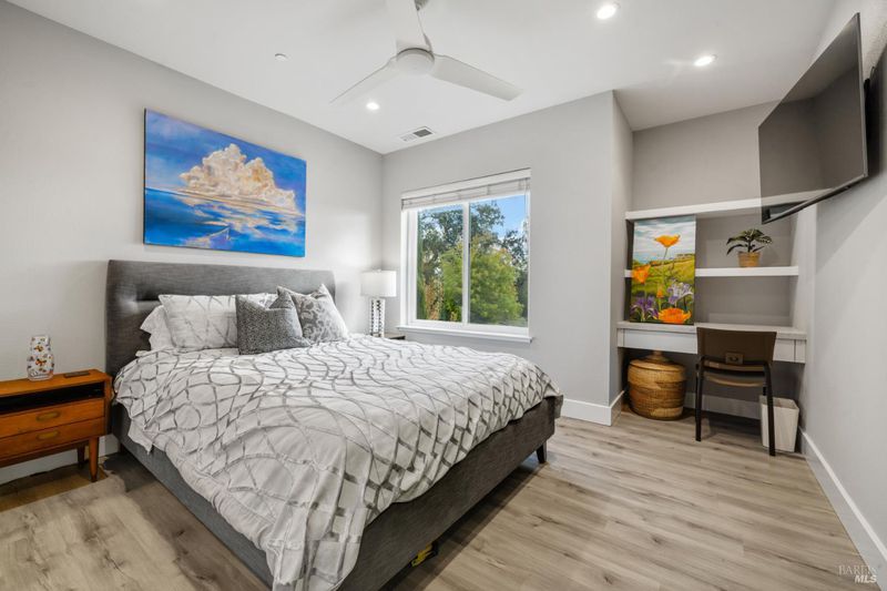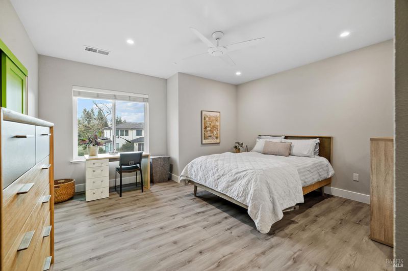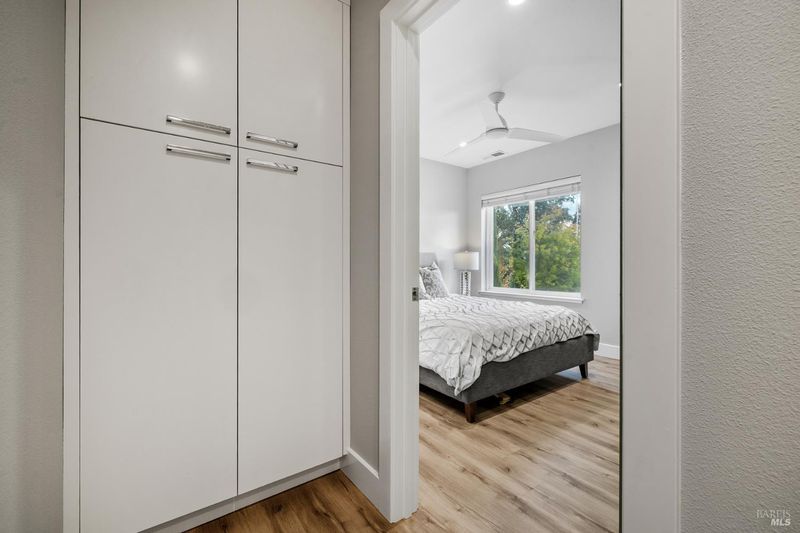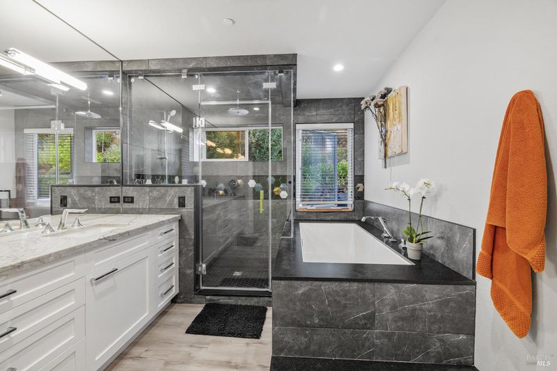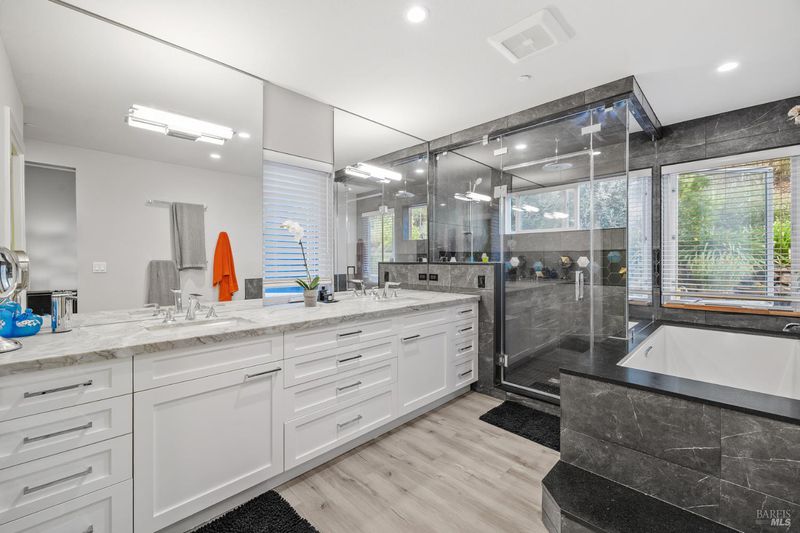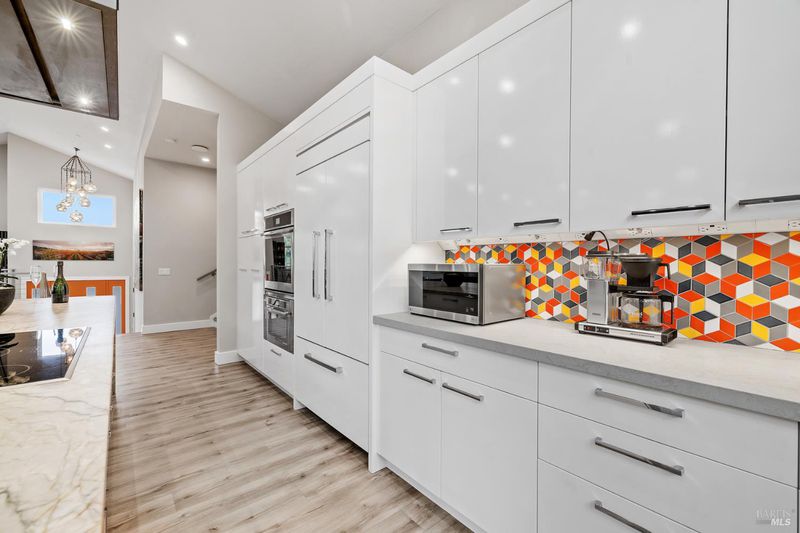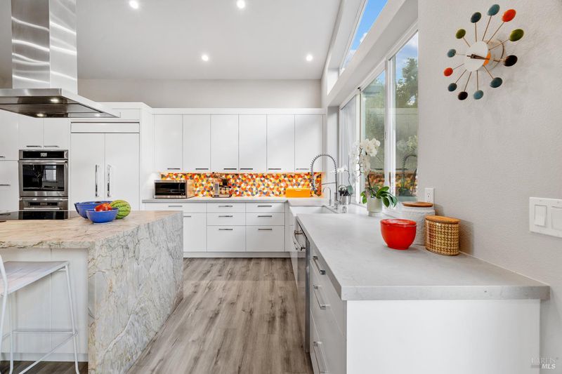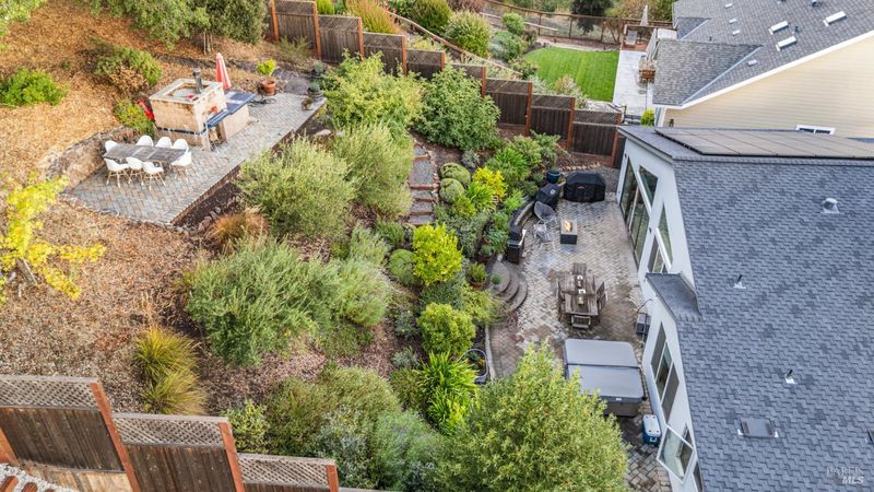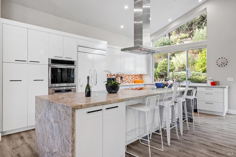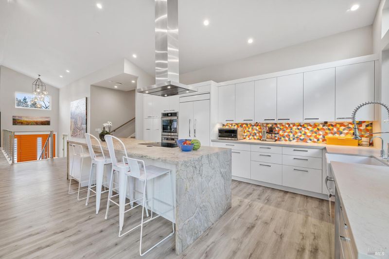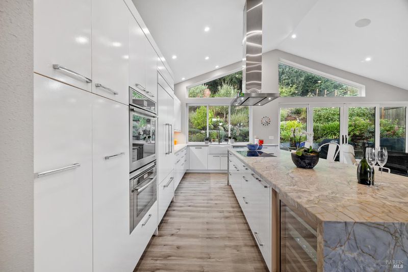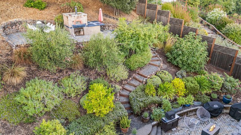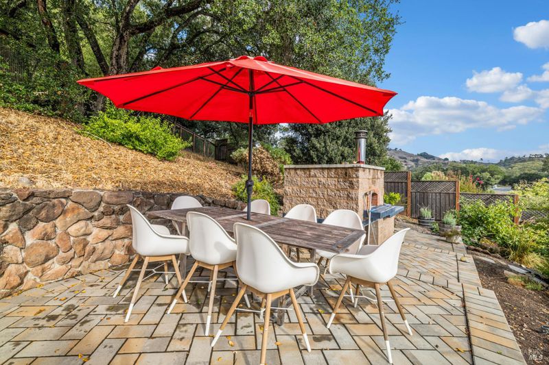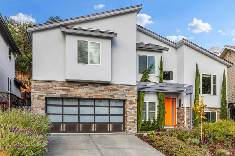 Stunning Modern New Construction in Coveted Wikiup Nestled at the end of a quiet cul-de-sac in the highly desirable Wikiup neighborhood, this striking new construction home blends contemporary design with wine country charm. Thoughtfully designed for both comfort and entertaining, the heart of the home is an open-concept great room and chef's kitchen featuring a dramatic 14-foot marble waterfall island and a full wall of glass that frames serene views and invites seamless indoor-outdoor living. Step outside to a beautifully terraced backyard oasis complete with a relaxing jacuzzi, Mugnaini wood-fired pizza oven, outdoor bar with seating area, expansive patio with hillside views, mature fruit trees, and a thriving vegetable gardenperfect for gatherings or quiet evenings under the stars. With 5 spacious bedrooms and numerous turnkey features included in the sale, this home is a rare opportunity to enjoy modern luxury in a prime Sonoma County location. Truly an entertainer's dream set in the heart of Wine Country.
