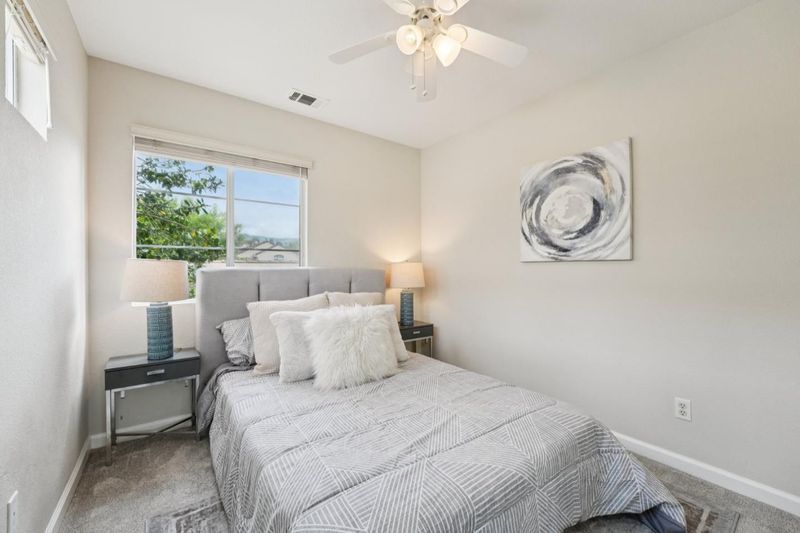 Welcome to this lovely home in the highly sought-after gated Silver Creek Country Club. The beautifully updated 3-bedroom, 2.5-bath residence offers comfort, style, and modern convenience throughout, with soaring high ceilings bringing in ample natural light all day long. The remodeled kitchen features quartz countertops, stainless steel appliances, and newer smart upgrades. Custom Levolor smart window coverings, fresh interior paint, and newer carpet enhance the home's bright and contemporary feel. The conveniently located main-level primary suite offers a walk-in closet, dual sinks, a soaking tub, and a separate shower, creating a private retreat. An interior laundry with a washer and dryer adds everyday ease. Step outside to a spacious and serene backyard with no rear neighbors, offering peaceful hill views. Enjoy stamped concrete, a trellis, grass area, tasteful landscaping, fruit trees and a bonus storage shed, perfect for relaxing or entertaining. HOA amenities include gate security, front yard landscaping and guest parking, adding both convenience and security. Don't miss this exceptional opportunity to own a beautiful home in a premier country club setting.