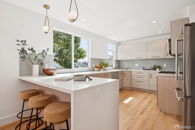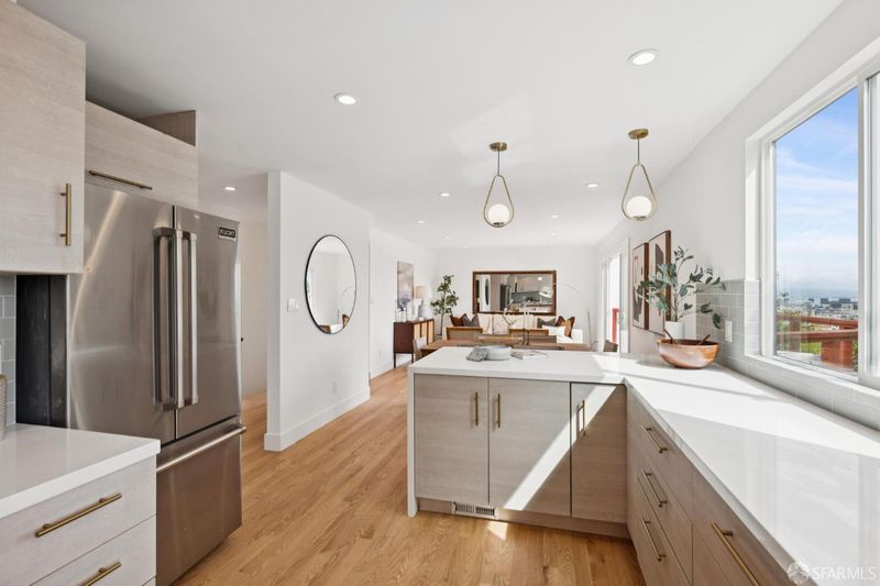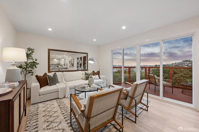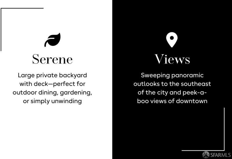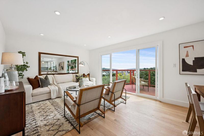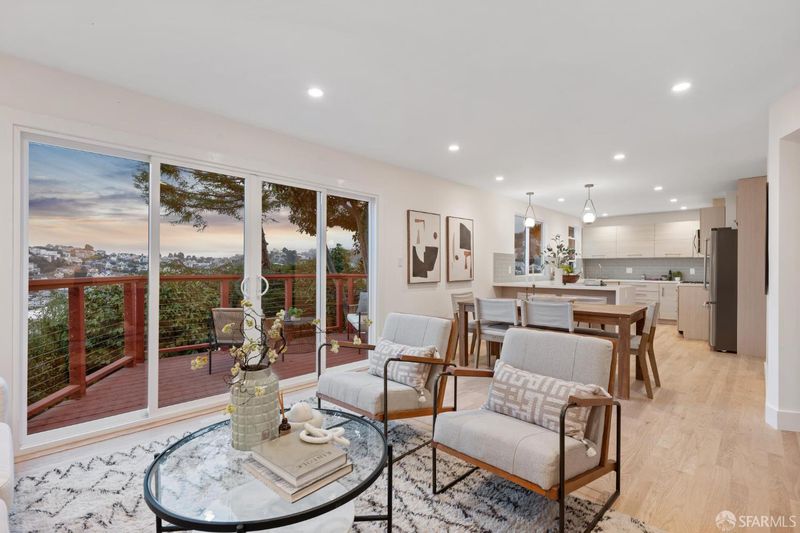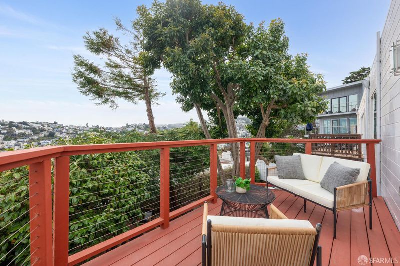 Set on a peaceful block with sweeping panoramic outlooks yet just a short stroll to Castro Village, this bright and inviting home perfectly balances serenity with city living. The upper level features an open floor plan designed for today's lifestyle, filled with natural light and framed by expansive views. The living, dining and kitchen all flow seamlessly to a view deck, creating an ideal space for entertaining or relaxing. The spacious kitchen is thoughtfully appointed with an eat-in area, ample cabinetry, generous counter space, premium appliances & a designer Fireclay tile backsplash. 2 spacious bedrooms & a beautifully remodeled bathroom complete this level. Downstairs, two additional bedrooms & a full bathroom open to a large private backyard with deck, perfect for outdoor dining, gardening or simply unwinding. With 4 bedrooms in total, the home offers flexible options for a home office, guest space, or creative studio. Just 4 doors from Corona Heights Park with its trails, dog walking paths, Randall Museum & beautiful sunset views, you'll find nature at your doorstep. With Buena Vista Park, Castro Village shops & dining & the Castro MUNI station only a short walk away, this home delivers both tranquility & convenience in one of San Francisco's most coveted neighborhoods.