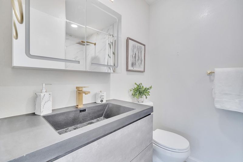 Head-to-toe remodeled SFR in prime Union City near Award-Winning Delaine Eastin Elementary school district! Fully renovated with city permits by licensed contractors, this home blends modern style with comfort. Features NEW interior & exterior paint, NEW waterproof flooring, vaulted ceiling in the living room with abundant natural light, cozy NEW fireplace, and LED recessed lighting. The upgraded kitchen boasts European-style cabinets, quartz counters, island seating, and NEW stainless steel appliances, opening to a separate family room. Functional floor plan includes formal dining, pantry, laundry room, and convenient downstairs 1 bed/1 bath ideal for family visits. Upstairs offers a nice master suite with dual sink vanity plus an office space loft perfect for work or study. All bathrooms feature designer finishes. Major updates include new furnace, thermostat, stairs, outlets/switches, closet doors, and finished garage. Expansive yard with mature trees, and landscaping. Prime location with easy access to I-880/92, BART, Union Landing, Coyote Hills Trails, and Pioneer Park. Friendly neighbors complete this ideal home - don't miss out!