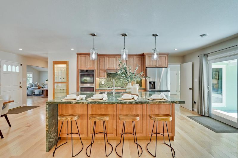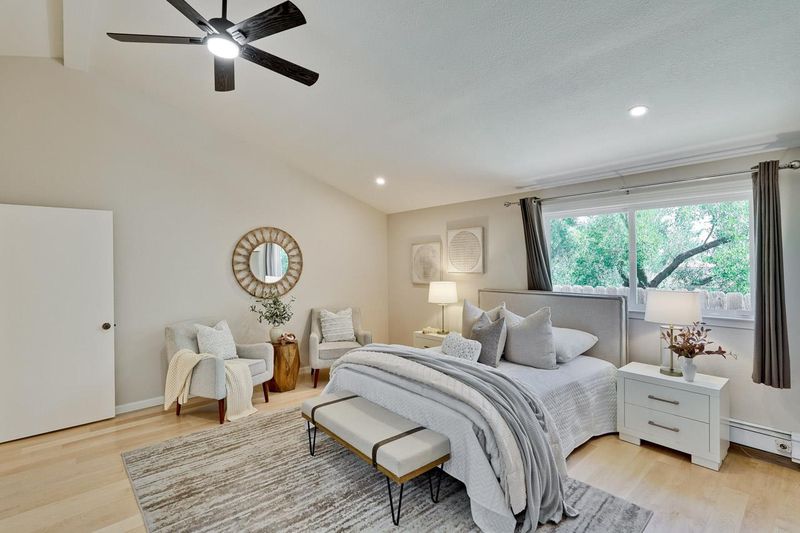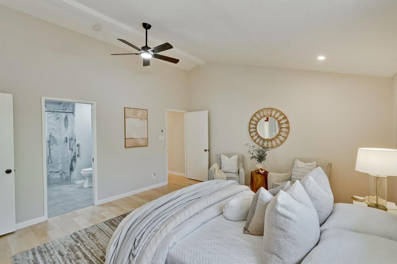 Welcome to this large 5 bedroom home located in the desirable Highlands area of Los Altos. 1590 Vineyard Drive features 4 bedrooms on the spacious main level plus an additional en-suite bedroom in an apartment style living space on the second level complete with a large living room. Some standout features of this great home are an incredible gourmet kitchen with an oversized waterfall island with breakfast bar, extensive high end custom cabinetry with endless surprises of top of the line features to keep you organized and ready for beautiful meals and stylish entertaining. It will be very hard to find a kitchen that compares with these amenities! The oversized Living Room features vaulted ceilings, dual fans, a large bay window and durable maple flooring which is perfect for entertaining or relaxing with friends and family. The Primary Suite has vaulted ceilings, a dream bathroom with beautiful and luxurious features including a dual shower, custom cabinetry and impressive natural stone. The large lot features a beautifully landscaped front yard and low maintenance paver backyard that is exceptional for events, gatherings, BBQs and more. The lot is large enough to create other inspiring options such as lawns, gardens or even a pool/spa! Radiant Heating & Lots of Storage !