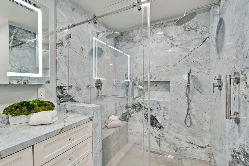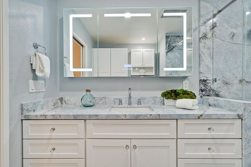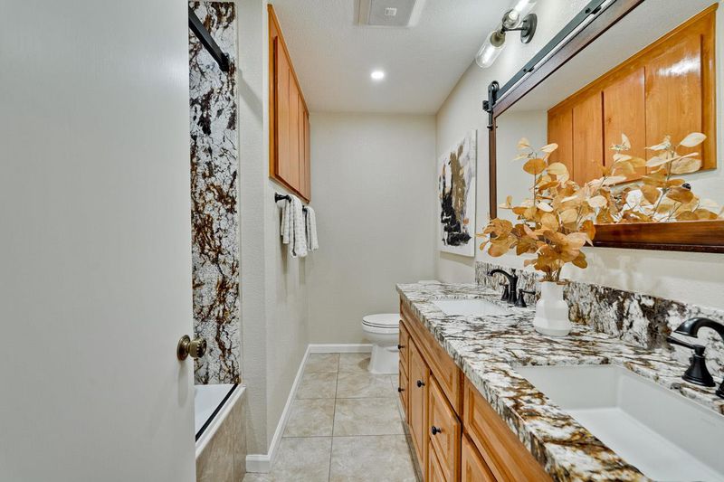 - Double Sinks, Full on Ground Floor, Granite, Primary - Stall Shower(s), Shower over Tub - 1, Stall Shower, Stone, Tile, Updated Bath
