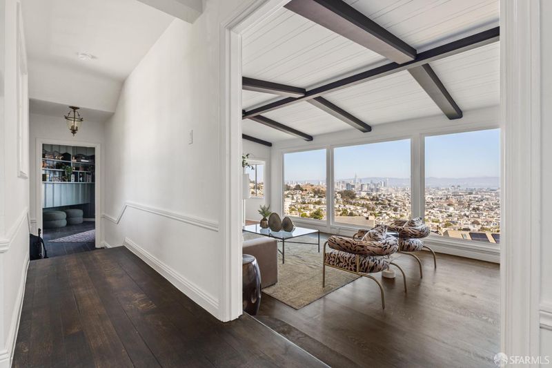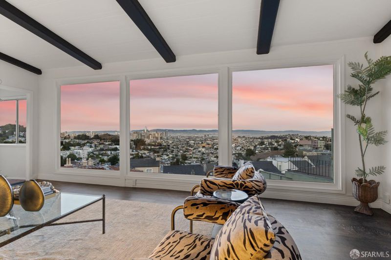 On the market for the first time in over six decades, This extraordinary stunning home offers scale,elegance,and sweeping views from nearly every room.The main level centers around a dramatic sunken living room with soaring beamed ceilings,fireplace, and panoramic windows framing the city skyline. A formal dining room with sweeping views,media room featuring wet bar and a brick fireplace,and a light-filled solarium with a third fireplace provide unrivaled spaces for entertaining. An updated eat-in kitchen,chic powder room,and laundry area complete this level. Upstairs,offers three large bedrooms, each designed to showcase the spectacular vistas and two full baths.The serene primary suite boasts an elevated sleeping area with adjoining sitting room or office and private bath.Adding rare flexibility, the property includes two charming one-bedroom apartments, 111 Graystone and 45 Pemberton,each with private entrances, ideal for rental income, guests, or home offices. A spacious garage and coveted location along the historic Pemberton Steps provide both practicality and charm, with direct access to Cole Valley, the Castro, hiking to Twin Peaks summit and transportation make this an exceptionally rare opportunity.Newer roof and all updated electrical in 2025.