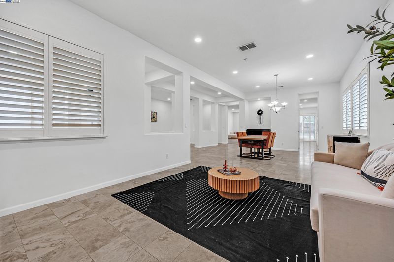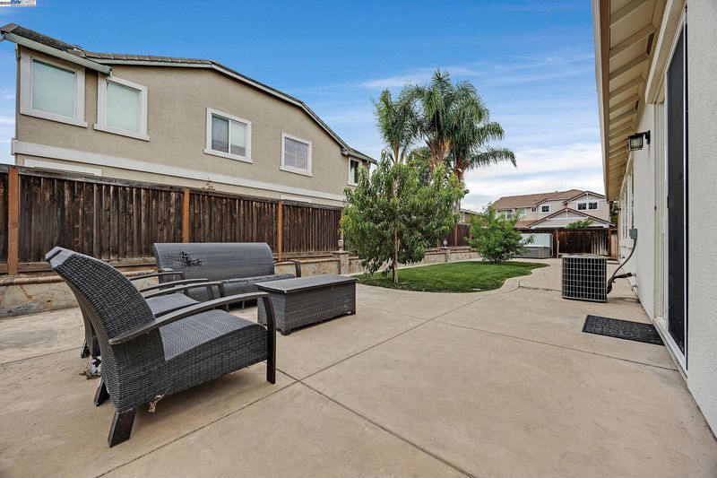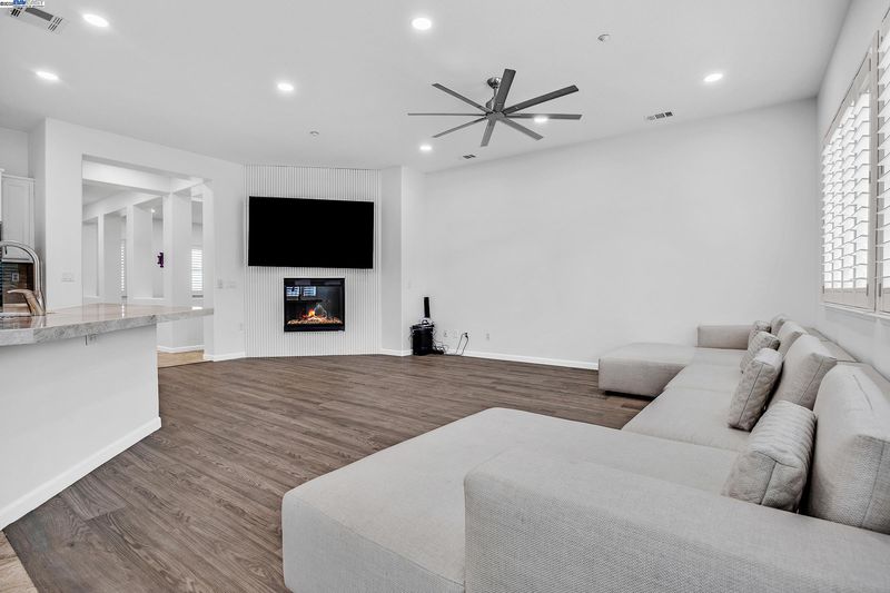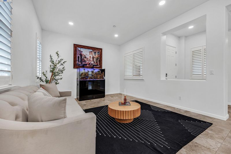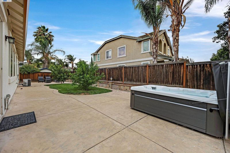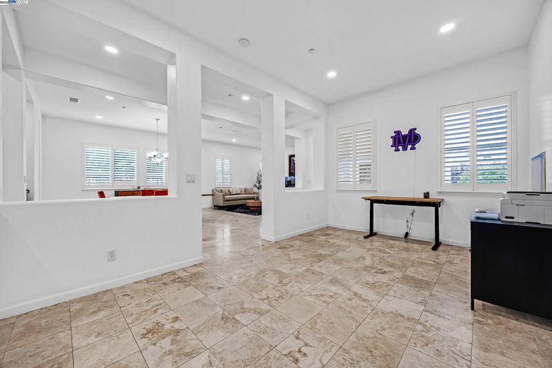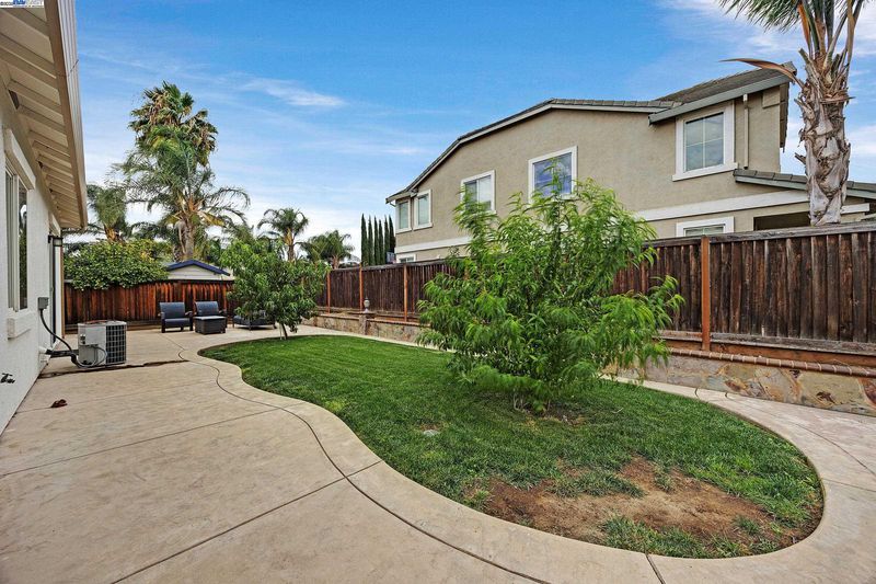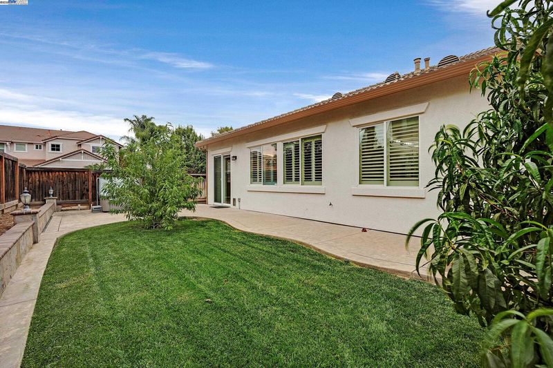 Bright and welcoming, this Montelena home offers an inviting blend of comfort and functionality. The entryway opens to the formal living and dining rooms, ideal for gatherings. A bonus office or den adds flexibility for work or relaxation. Smooth textured walls and shutters throughout create a clean, timeless look. The open floor plan flows into the kitchen and family combo room, where marble countertops, a breakfast bar, pantry, ample cabinetry, and newer stove and refrigerator make cooking a joy. The family room is warm and inviting with a beautiful accent wall and cozy fireplace insert. The spacious primary suite includes backyard access through its own slider, a generous walk-in closet, and a luxurious bath with stall shower and soaking tub. The backyard offers a grassy area with peach and nectarine trees, perfect for outdoor enjoyment. Sitting on a desirable corner lot, the property includes a 3-car garage, with the single-car garage standing separately for added convenience.