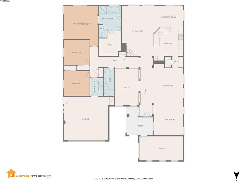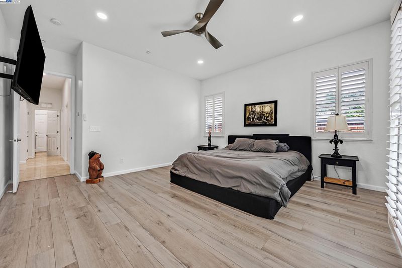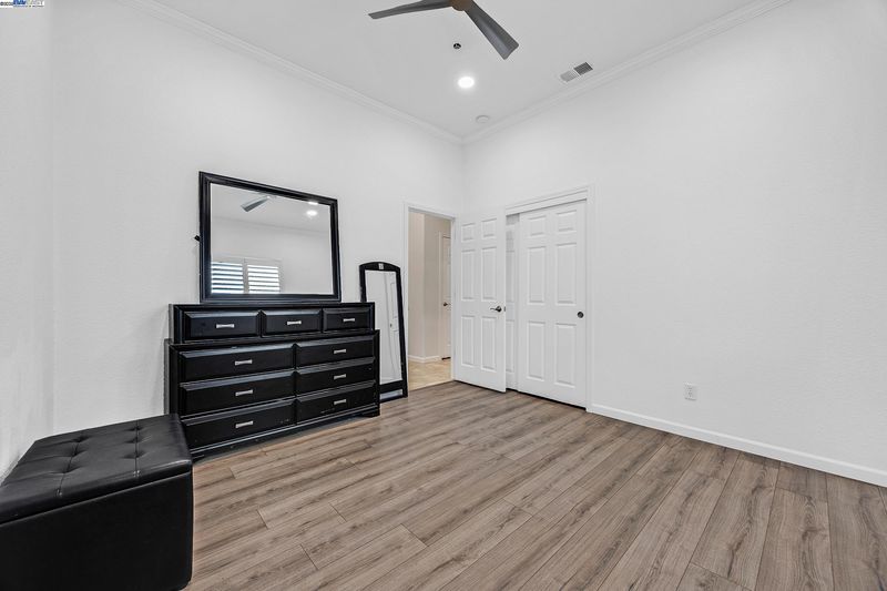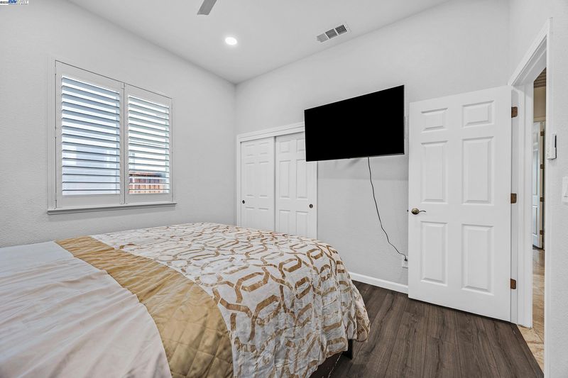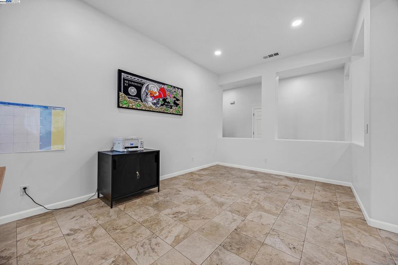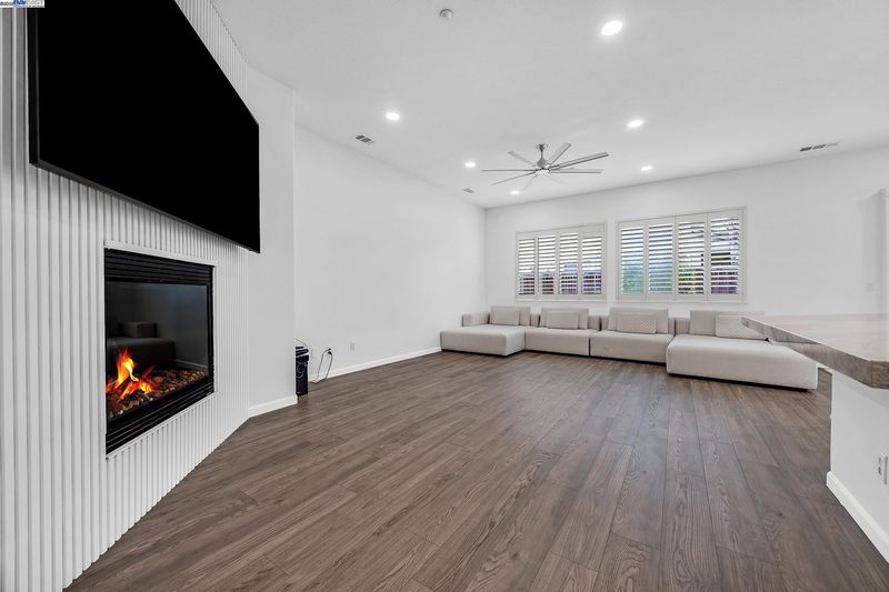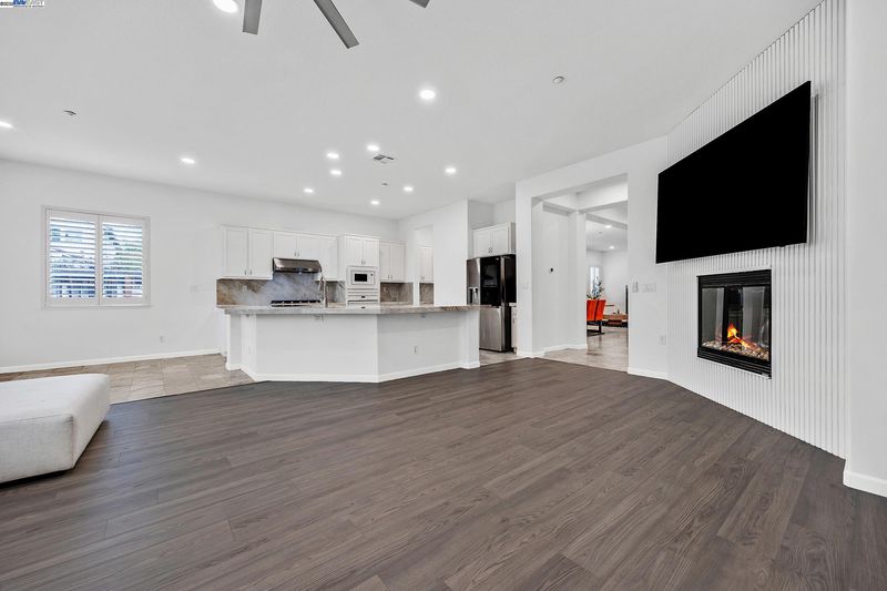Bright and welcoming, this Montelena home offers an inviting blend of comfort and functionality. The entryway opens to the formal living and dining rooms, ideal for gatherings. A bonus office or den adds flexibility for work or relaxation. Smooth textured walls and shutters throughout create a clean, timeless look. The open floor plan flows into the kitchen and family combo room, where marble countertops, a breakfast bar, pantry, ample cabinetry, and newer stove and refrigerator make cooking a joy. The family room is warm and inviting with a beautiful accent wall and cozy fireplace insert. The spacious primary suite includes backyard access through its own slider, a generous walk-in closet, and a luxurious bath with stall shower and soaking tub. The backyard offers a grassy area with peach and nectarine trees, perfect for outdoor enjoyment. Sitting on a desirable corner lot, the property includes a 3-car garage, with the single-car garage standing separately for added convenience.