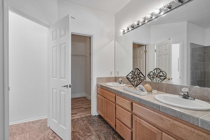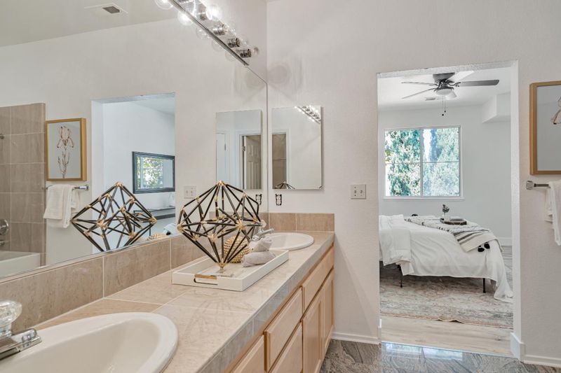 - Double Sinks, Half on Ground Floor, Oversized Tub, Stall Shower