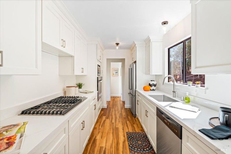 Picture Perfect in San Rafael! One-of-a kind 3bedroom, 3bath property with almost 1800 square feet of living space perfectly placed on an 11,000+ square foot lot overlooking Sun Valley! Long, private driveway leads to a unique, move-in-ready home surrounded by gorgeous gardens with extraordinary light, privacy and panoramic views. Large, light-filled living room has a wood burning fireplace and verdant views. Generous dining room enjoys in-out flow to an entertaining deck overlooking landscaped gardens with flagstone patios and play areas. Beautifully remodeled kitchen features new cabinets, quartz counters, stainless appliances and fixtures. Updated bathrooms include quartz-topped vanities, new lighting and fixtures. Expansive primary bedroom suite enjoys a private view balcony overlooking all of Sun Valley and a huge walk-in-closet. Two additional, generously sized bedrooms have in-out flow to a shared view deck. Luxury vinyl plank flooring and newer carpeting. Energy-efficient lighting. Large, 2-car garage with laundry, workbench and storage. Plentiful off-street parking outside garage and on the private driveway. Dream Micro-Climate. Sun Valley Elementary School. Great Location with downtown San Rafael shops, restaurants and Transit Center right nearby. Easy 101 Access.