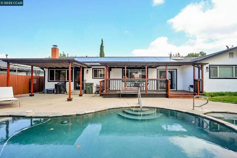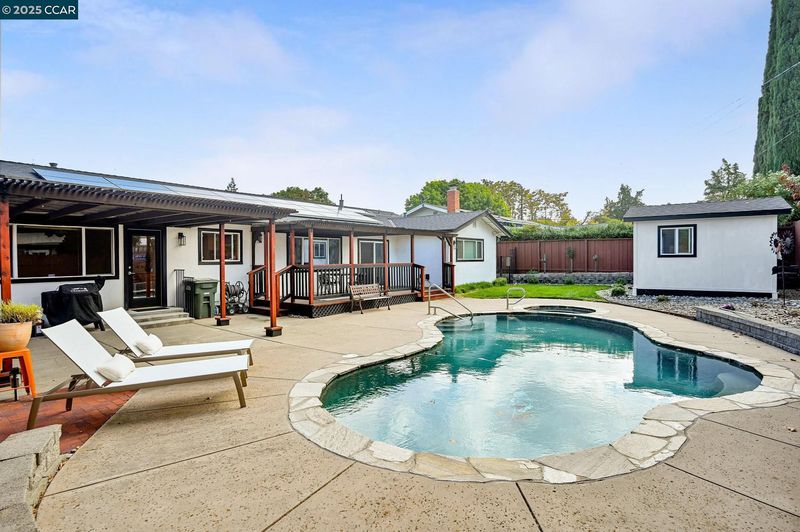 This home has been extensively updated with many important improvements that add comfort, efficiency, and peace of mind. Major upgrades include a new electrical panel, LED lighting, custom insulated garage door, chimney replacement, sewer lateral replacement, and a Lifetime roof with new downspouts (2019, including pool house). The kitchen features updated appliances, a new garbage disposal, and Maytag washer and dryer. Additional highlights include seven new ceiling fans, new exterior lighting and screens, low-flow toilets and shower heads, and a new shower door in the primary bath. Outdoor living has been enhanced with a redwood deck and overhang, freshly sealed, steel-framed redwood gates, drip irrigation, and updated fencing. Pool enthusiasts will appreciate the AIAqualink computer-controlled pool system, variable-speed pump, and 22 Tesla solar panels for energy savings. The water system has also been upgraded with whole-home filtration, softening, and reverse osmosis drinking water.