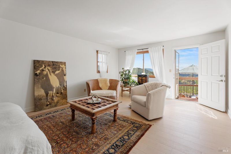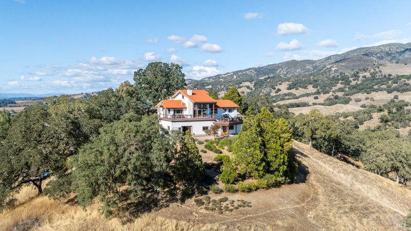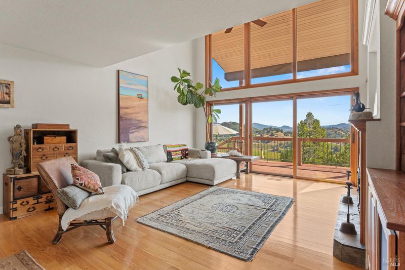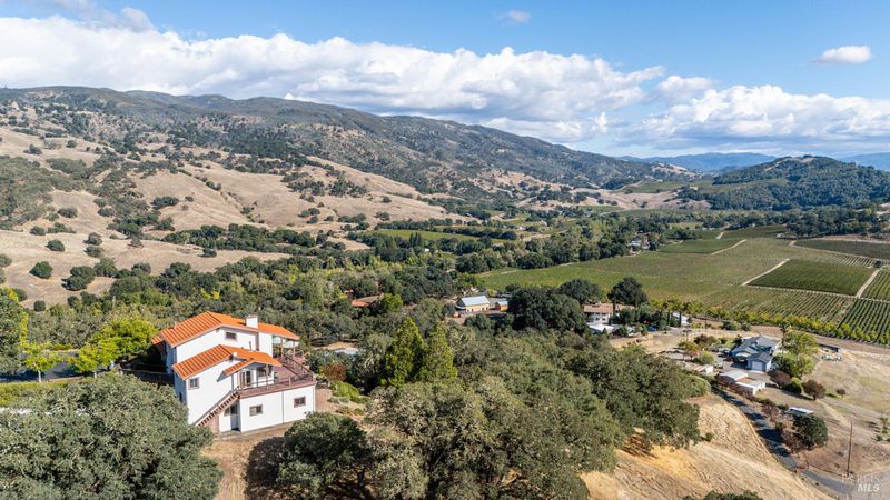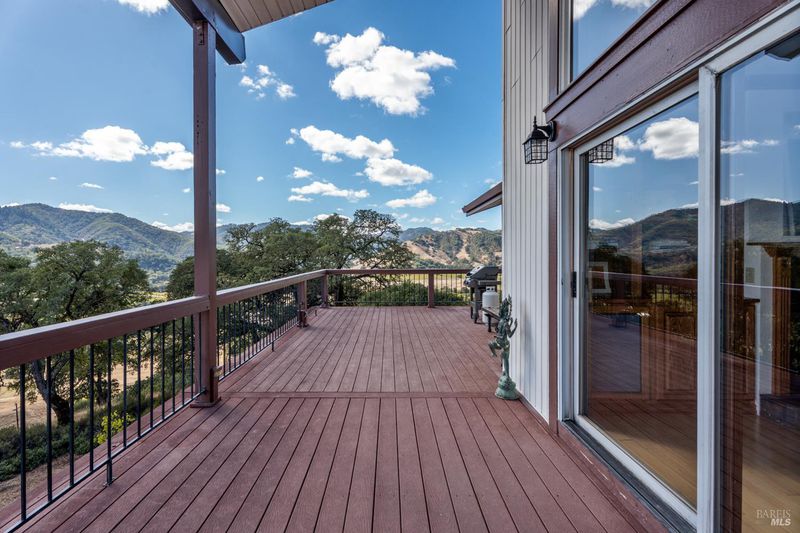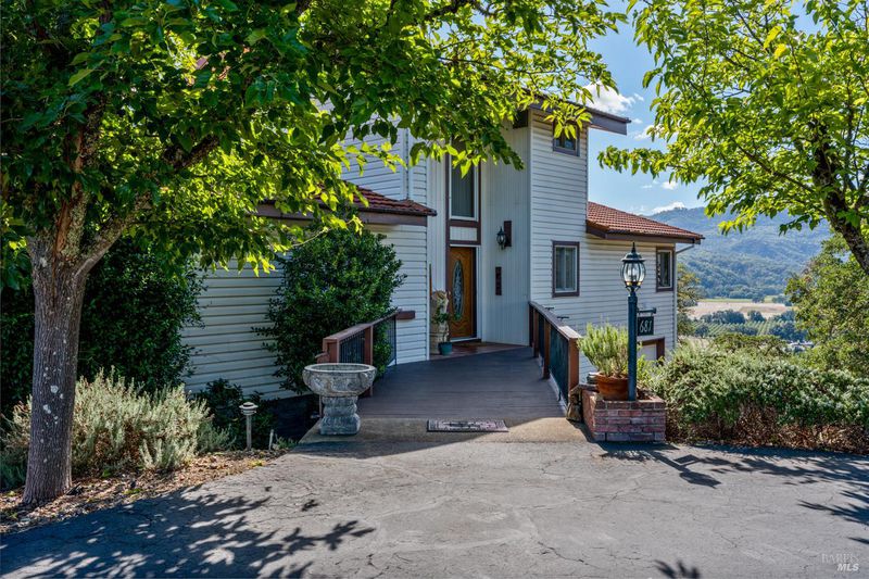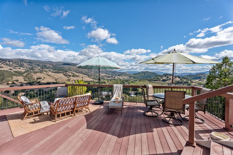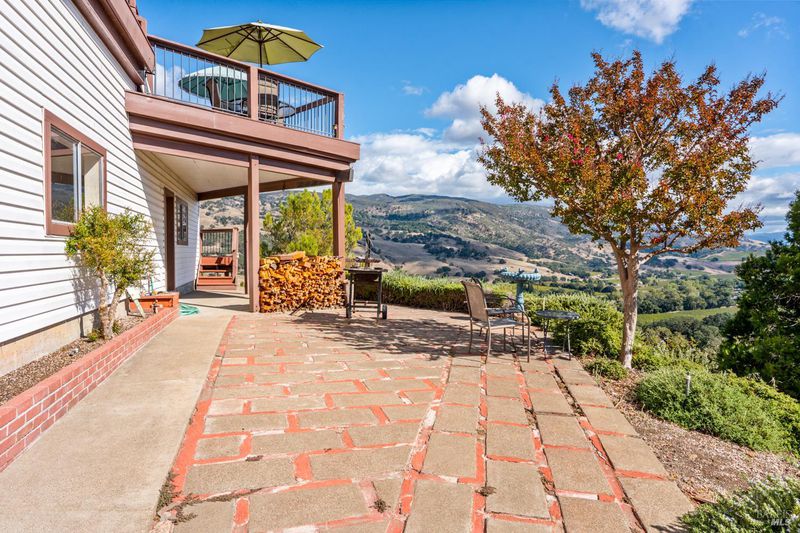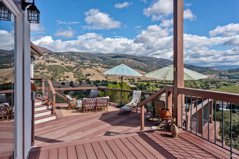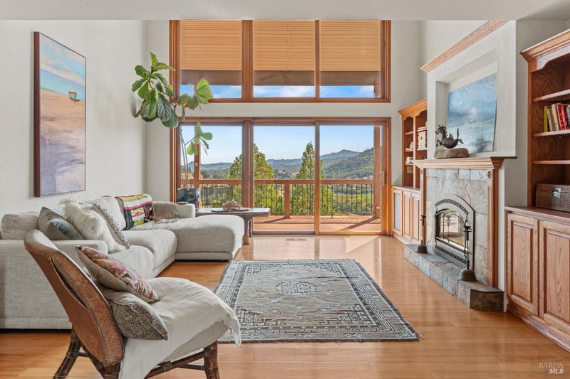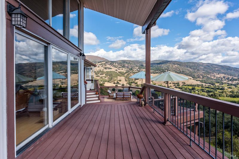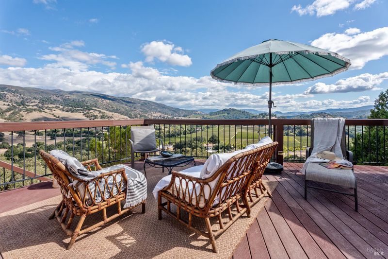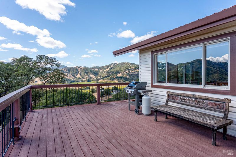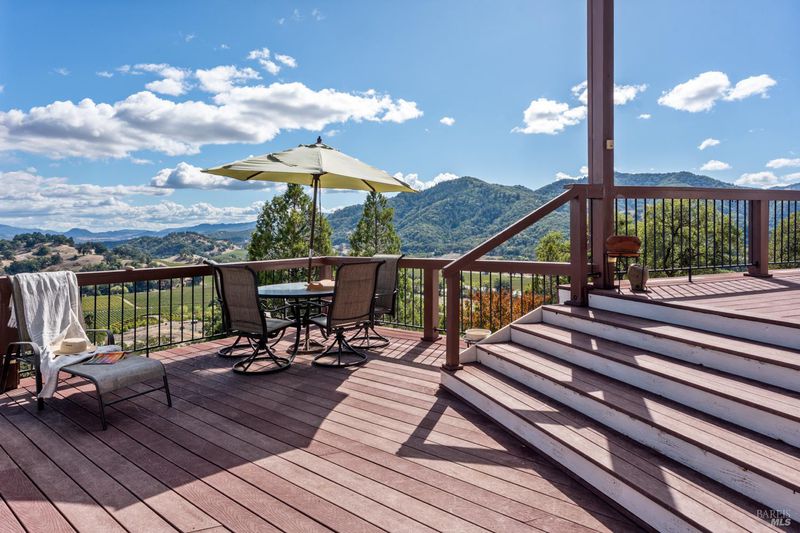 Affordably priced and set on 3.19 acres, this 2,458 sq. ft. home offers panoramic vineyard and mountain views from nearly every room. Featuring 3 bedrooms, 2 full baths, and 2 half baths, the thoughtful design includes a spacious kitchen with stainless steel double ovens, gas cooktop, and generous counter space, plus a dining room with wet bar. The living room boasts cathedral ceilings, wood floors, and a cozy gas fireplace, while the primary suite opens to a private deck showcasing breathtaking sunsets. The primary bath offers a tile shower, dual sinks, and walk-in closet and an upstairs loft bedroom includes a full bath. Living is a dream with expansive decks perfect for entertaining. Additional amenities include a Tuscan-inspired 312 sq. ft. art studio and a 900+ sq. ft. garage with RV parking. Low-maintenance landscaping and a Generac generator provide convenience and peace of mind. A rare opportunity to own a view-filled retreat in a serene setting.