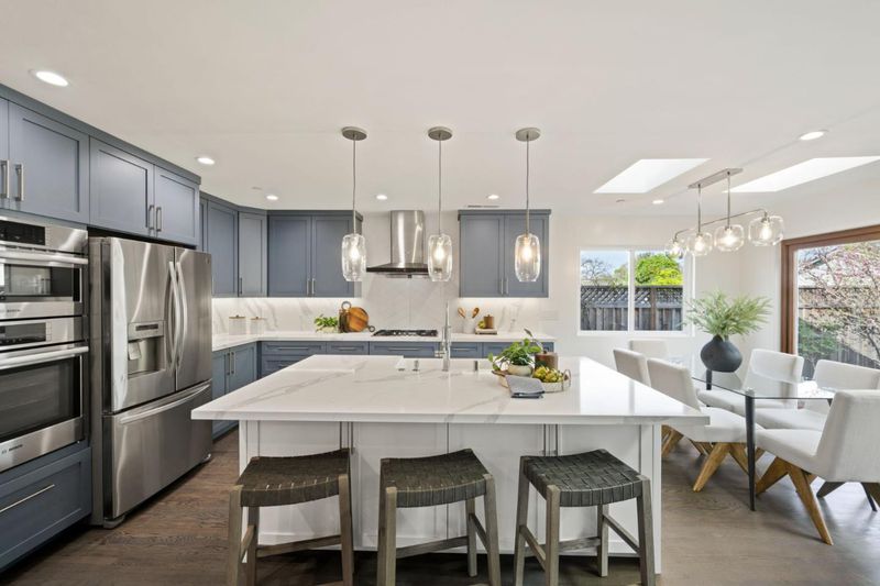 Welcome to 362 Stowell Avenue! This 4-bedroom, 3-bathroom home was thoughtfully remodeled in 2021 and offers a spacious open floor plan filled with abundant natural light courtesy of beautiful skylights throughout. The kitchen features distinctive cabinet colors with matching accents carried throughout the home, and luxurious marble countertops that add warmth and cohesive design. A triple-panel glass door off the kitchen opens to a gorgeous private backyard, lined with fruit trees, perfect for entertaining or relaxing. The main floor includes a master bedroom with a walk-in closet, excellent flexibility with approved permits and layout functionality for a potential Junior ADU. Two additional bedrooms, while a private fourth ensuite upstairs offers its own full walk-in closet. The bathrooms are thoughtfully designed with unique accent tiling and spacious baths and showers. Enjoy downtown Sunnyvale as you stroll along Murphey Avenue, home to vibrant restaurants, cafes, and the beloved weekly farmers market. This home also offers convenient access to Highways 101, 237, and Cal Train, with everyday essentials like Target, Whole Foods Market, local dining, and major employers including LinkedIn and Uber all just minutes away.