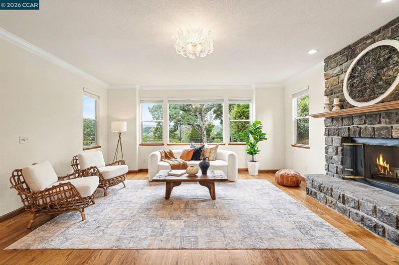 Rare opportunity for its size and location, this 6 bedroom, 3 full & 2 half bath home is in the sought-after Muir Oaks neighborhood on a private lot of almost an acre, expanded & renovated in 2002. Offering approximately 4,887 sq ft, this gated property features a detached 3 car garage plus abundant parking for RVs, boats & more, secured behind a separate fence. The backyard showcases an in-ground pool, spa & scenic views—perfect for entertaining. The main level includes spacious formal living, dining & family rooms, a well-appointed kitchen with a butler’s pantry, spacious laundry room, & two half baths including one ideal for pool access. The primary suite opens to the backyard and pool, with two additional bedrooms featuring walk-in closets & a shared full bath. Upstairs offers a large bonus room with picture windows & hillside views, two oversized bedrooms with balcony access & gorgeous views, an additional bedroom/office with built-ins, full bath & a huge storage room. Ideal for multi-generational living. Hardwood floors, newer carpet, fresh interior paint, a recently resurfaced driveway, dual zone HVAC, 8 skylights & extensive storage throughout. Close to shopping, restaurants, parks, & schools, and just minutes from vibrant downtown Martinez with easy commute access.