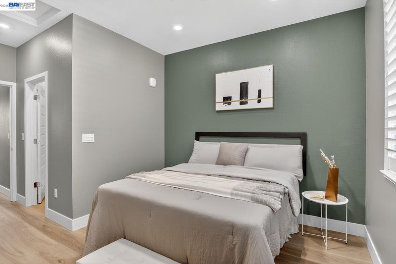 Welcome to this modern 2 bed, 2.5 bath townhome in the Lavender community, close to everything Silicon Valley has to offer. This 3 years young, all-electric home features an efficient design with owned solar, delivering exceptionally low energy bills, often under $20/mo. The stylish kitchen is equipped with stainless steel appliances, induction stove, maple cabinets, and quartz countertops, creating a clean and contemporary cooking space. Luxury vinyl flooring throughout makes everyday living and cleaning effortless. Both bedrooms feature private en-suite bathrooms, offering comfort and privacy, while a zoned HVAC system allows independent temperature control on each level. The home also includes a convenient attached 2-car garage with EV prewire. Enjoy a vibrant lifestyle with mini golf, restaurants, and a supermarket within walking distance. Plus, Apple Park, shopping centers, downtown Sunnyvale, highly rated K-12 schools, Caltrain, and Major Highways are a few minutes' away. Residents enjoy access to a shared space with BBQ area, lounges, and clubhouse perfect for gatherings. A fire station across the street provides additional peace of mind and fast response. A great opportunity to own an energy efficient, low-maintenance home in one of Sunnyvale's most convenient locations.